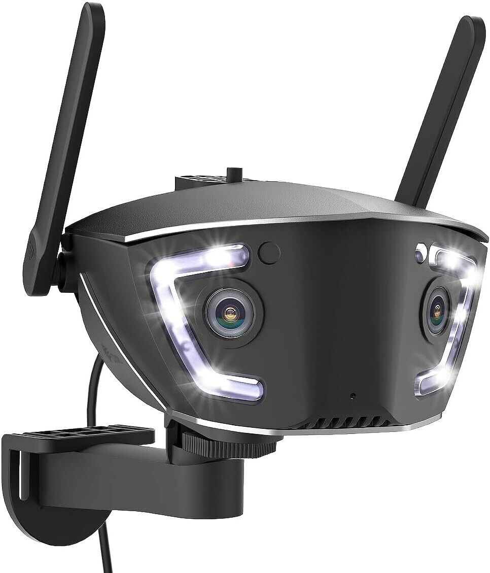 ctronics 4MP Dual-Lens Überwachungskamera Aussen WLAN mit 180° Sichtwinkel, IP Kamera Outdoor, 2,4/5 GHz WiFi, Person-/Fahrzeug-/Haustier-Erkennung, Cloud, Farbnachtsicht, 2-Wege-Audio (Schwarz)