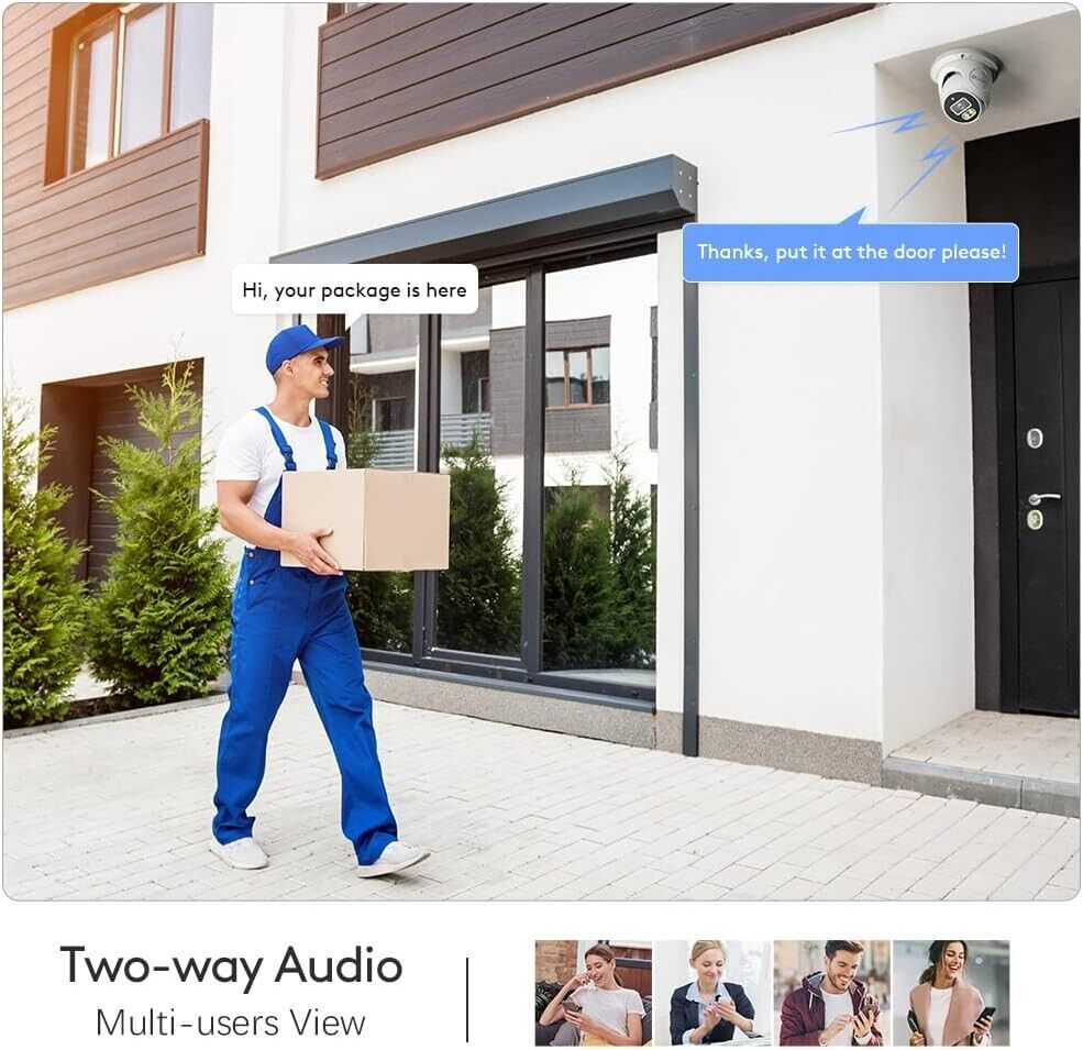 Diese 5MP-Sicherheitskamera für den Außenbereich mit WLAN verfügt über ein eingebautes Mikrofon und einen Lautsprecher, sodass Sie beim Live-Streaming über WLAN nicht nur den Ton über die Kuppelkamera hören, sondern auch mit Ihren Kindern, Lieferboten oder Fremden an Ihrer Tür sprechen können. Einfache Kommunikation jederzeit und überall.