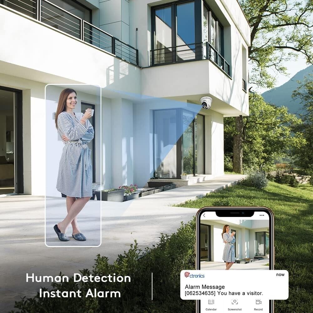 Ctronics CTIPC 610C - Drahtlose 2K-4MP-Überwachungskamera mit Personenerkennung und automatischer Verfolgung Starre Kamera ohne Rotationsfunktion oder Zoom