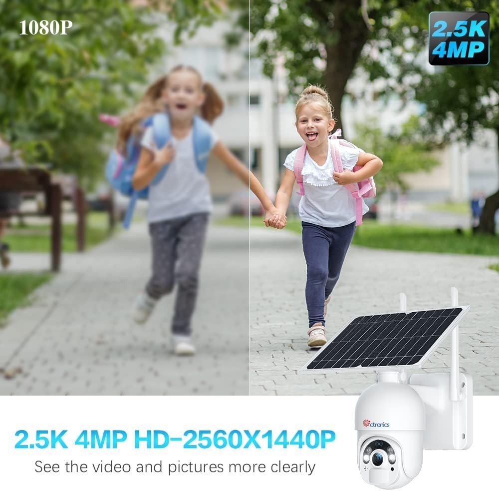 - Die 100% kabellose, wlan kamera outdoor für den Außenbereich hat eine Auflösung von 2.5K 4MP. Mit Full HD Bildern für Tag und Nacht wird jedes Detail klar und lebendig dargestellt.