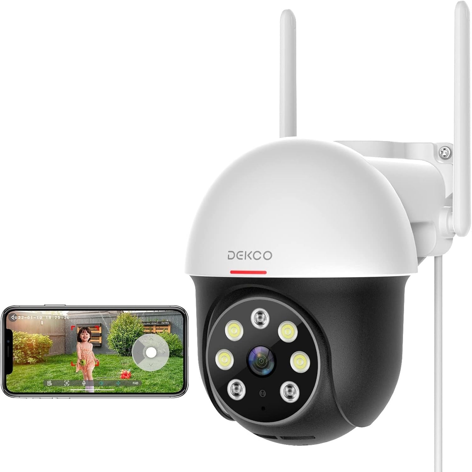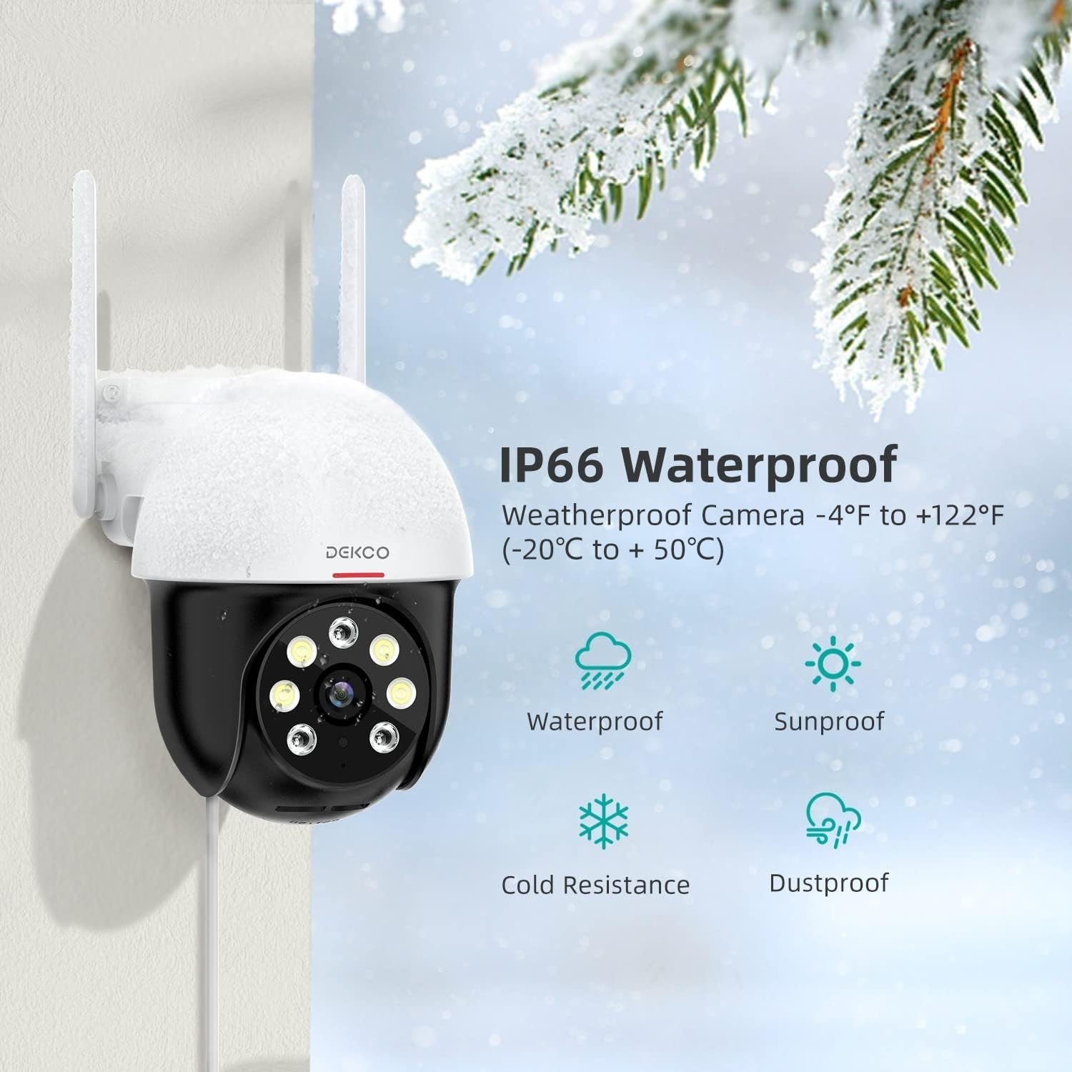 DEKCO 2K/3MP Überwachungskamera Aussen WLAN, 360° PTZ IP Kamera Überwachung Aussen Außen/Outdoor, Automatische Verfolgung, Nachtsicht in Farbe, 2-Wege Audio, IP66 Wetterfest