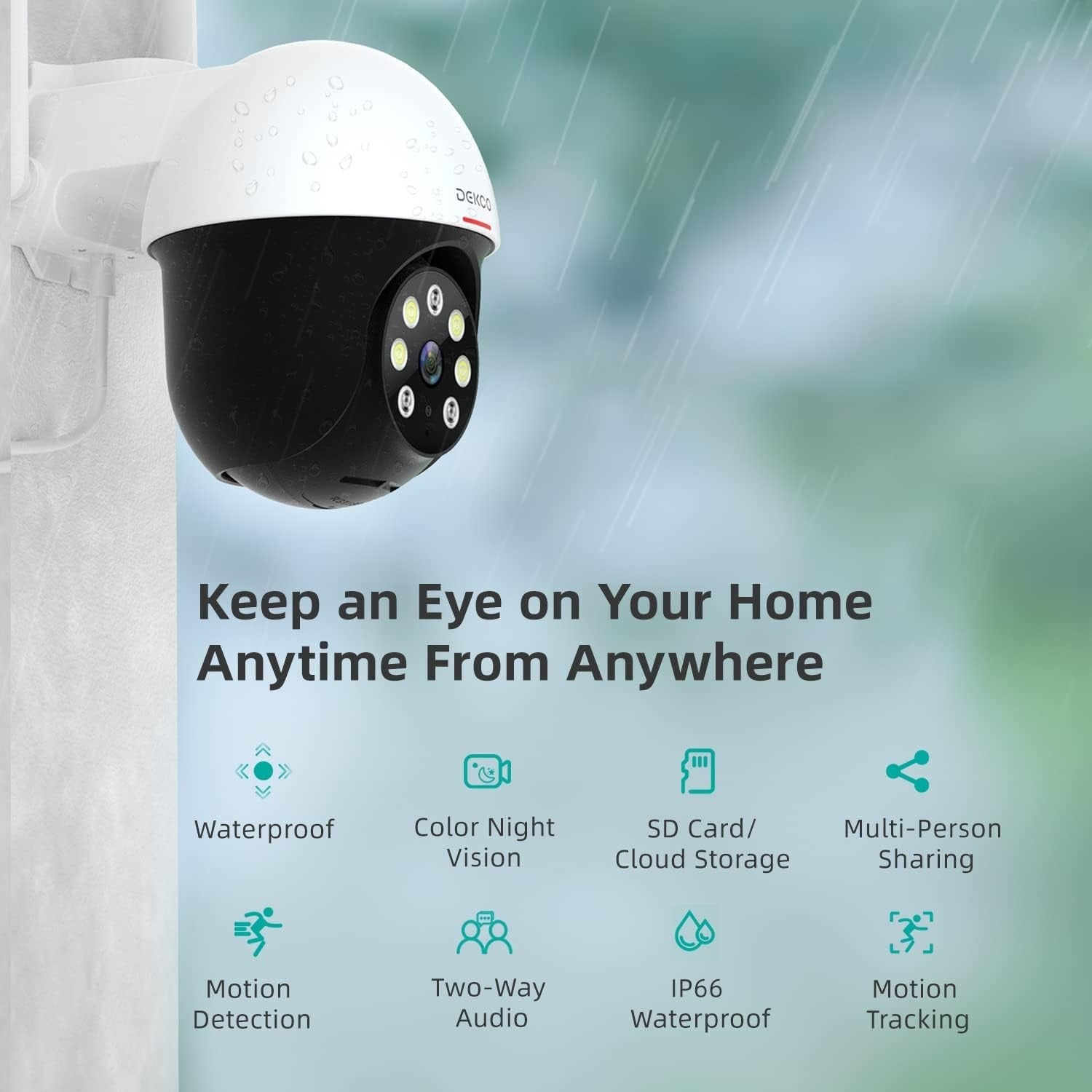 - 【Bewegungserkennung - PTZ】 --- Die DEKCO Überwachungskamera außen unterstützt einen horizontalen Strahl von 335 ° und eine vertikale Strahlrotation von 90 °. Sie können sie fernsteuern, um jeden Winkel und jeden Bereich anzuzeigen. Die automatische Bewegungserkennung konzentriert sich nur auf die Details, die Ihnen wichtig sind.