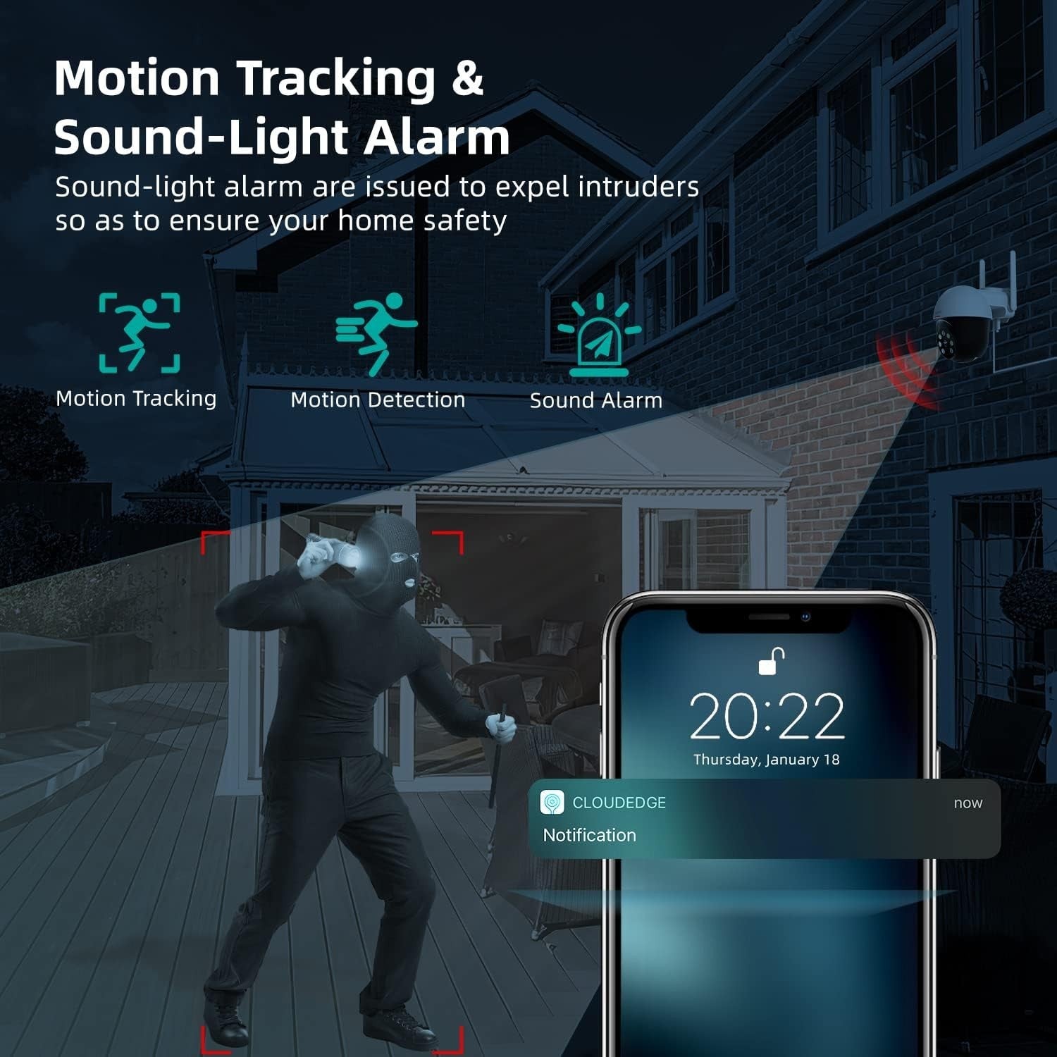 - 【Doppelter Alarm - Räumung in Echtzeit】 --- Wenn die DEKCO wlan Kamera Outdoor eine Bewegung erkennt, löst sie einen Licht- und Tonalarm aus, um ungebetene Gäste abzuschrecken. Gleichzeitig erhält Ihr Handy Echtzeit-Benachrichtigungen, damit Sie keinen Notfall verpassen.