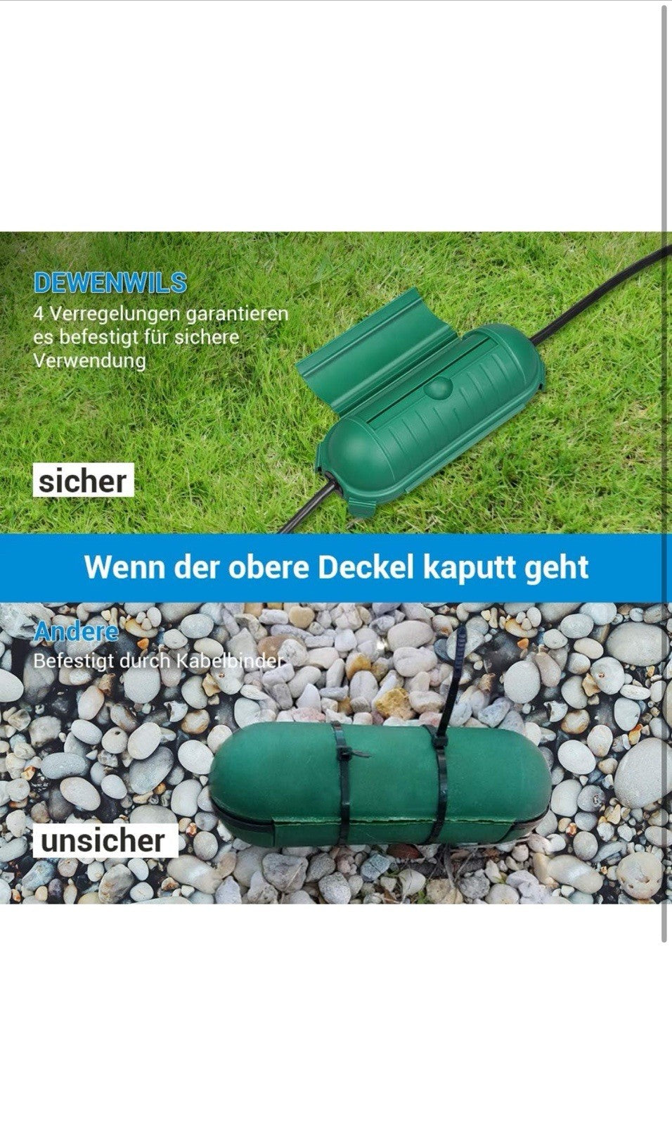 Wasserdichte Verbindung】 Diese wasserdichte Kabelbox für Verlängerungskabel bietet einen abgedichteten Raum zum Schutz der Steckverbindungen im Außen- und Innenbereich vor Wasser, Schnee, Regen, Staub usw., um die Sicherheit des Stromkreises zu gewährleisten (Hinweis: Nicht ins Wasser tauchen!)