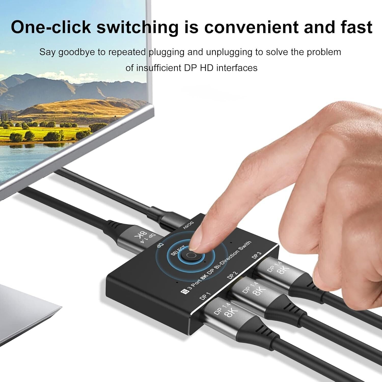 DisplayPort 8K DP 1.4 Switch 3In 1Out 1In 3Out Bidirektional 8K@30Hz 4K@144Hz Sp