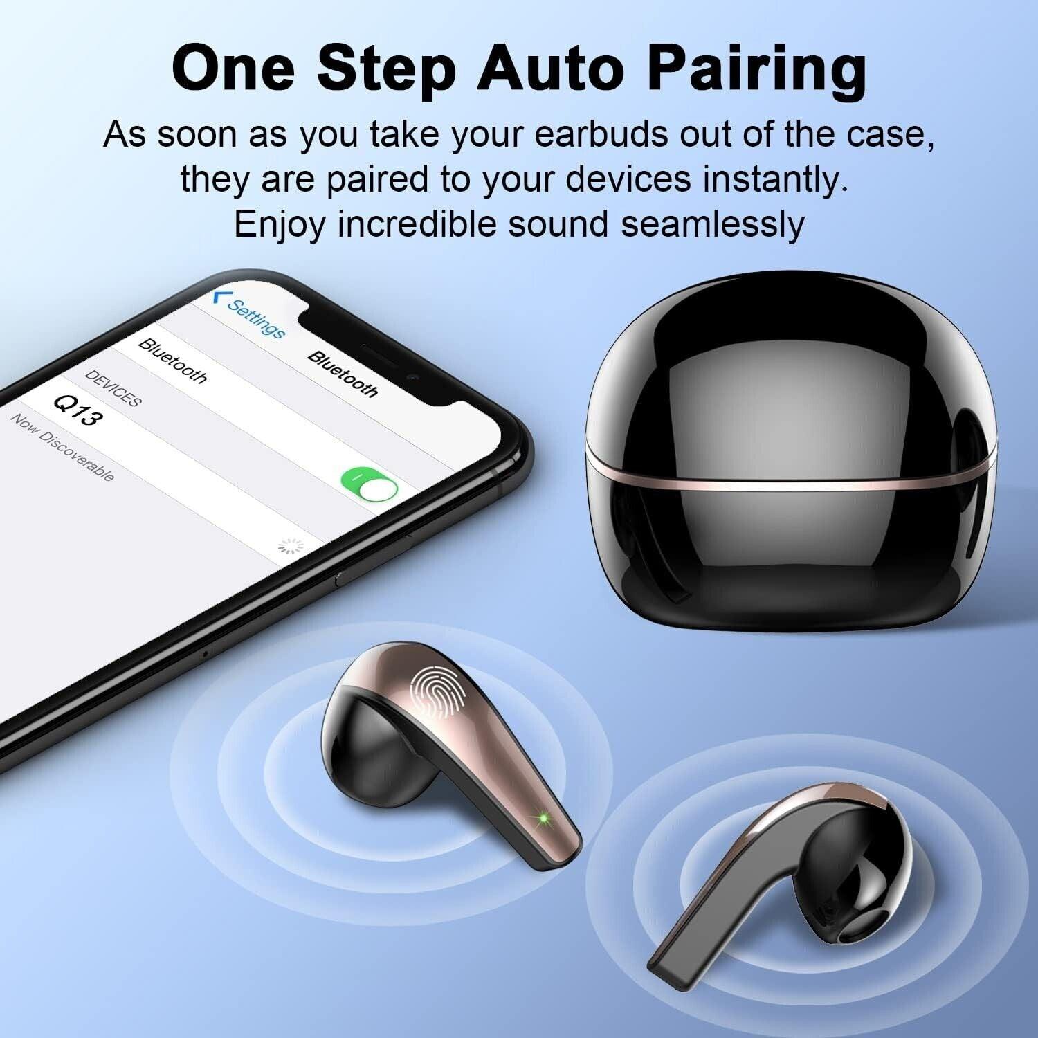 • Immersiver Sound und automatisches Pairing: Der Bluetooth-Kopfhörer verfügt über ein einzigartiges Stereodesign, einen dynamischen 13-mm-Graphen-Audiotreiber und AAC/SBC-Audiocodierungstechnologie, er erfasst jedes Detail der Musik und 43 % Bassverstärkung. Der kabellose Bluetooth-Kopfhörer kann sich automatisch einschalten und mit dem zuletzt gekoppelten Gerät verbinden (1S), wenn Sie die Ladebox öffnen, wodurch langwierige Vorgänge vermieden und Wartezeiten gespart werden.