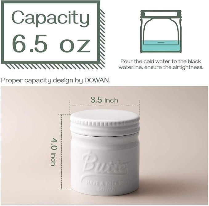 • Butterdose mit großem Fassungsvermögen: Der Wasserstand ist mit einer schwarzen Linie markiert und soll die Butter vor der Luft abdichten und so die Butter frisch halten. Im Vergleich zu anderen Butterdosen auf dem Markt passen mit ihrer großen Kapazität problemlos 1 1/2 Stangen jeder Art von Butter hinein, einschließlich Ihrer selbstgemachten Butter.