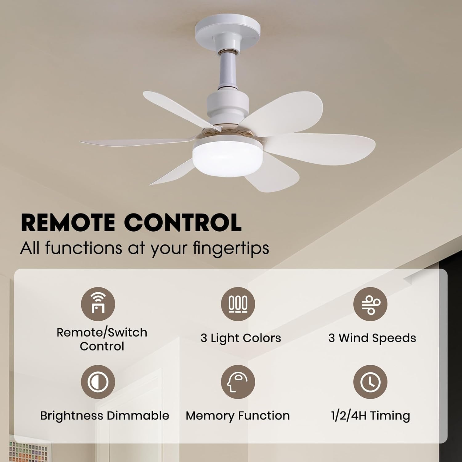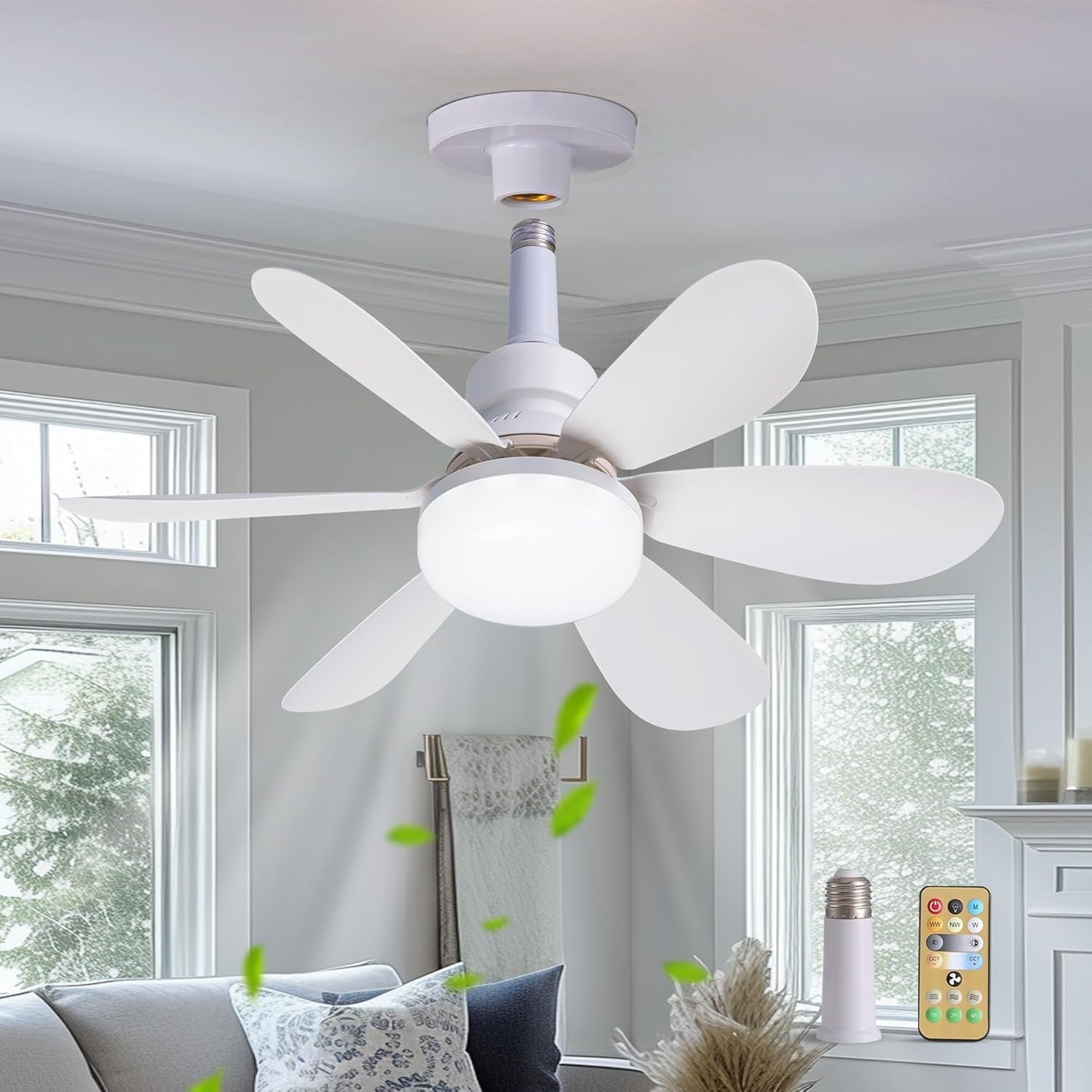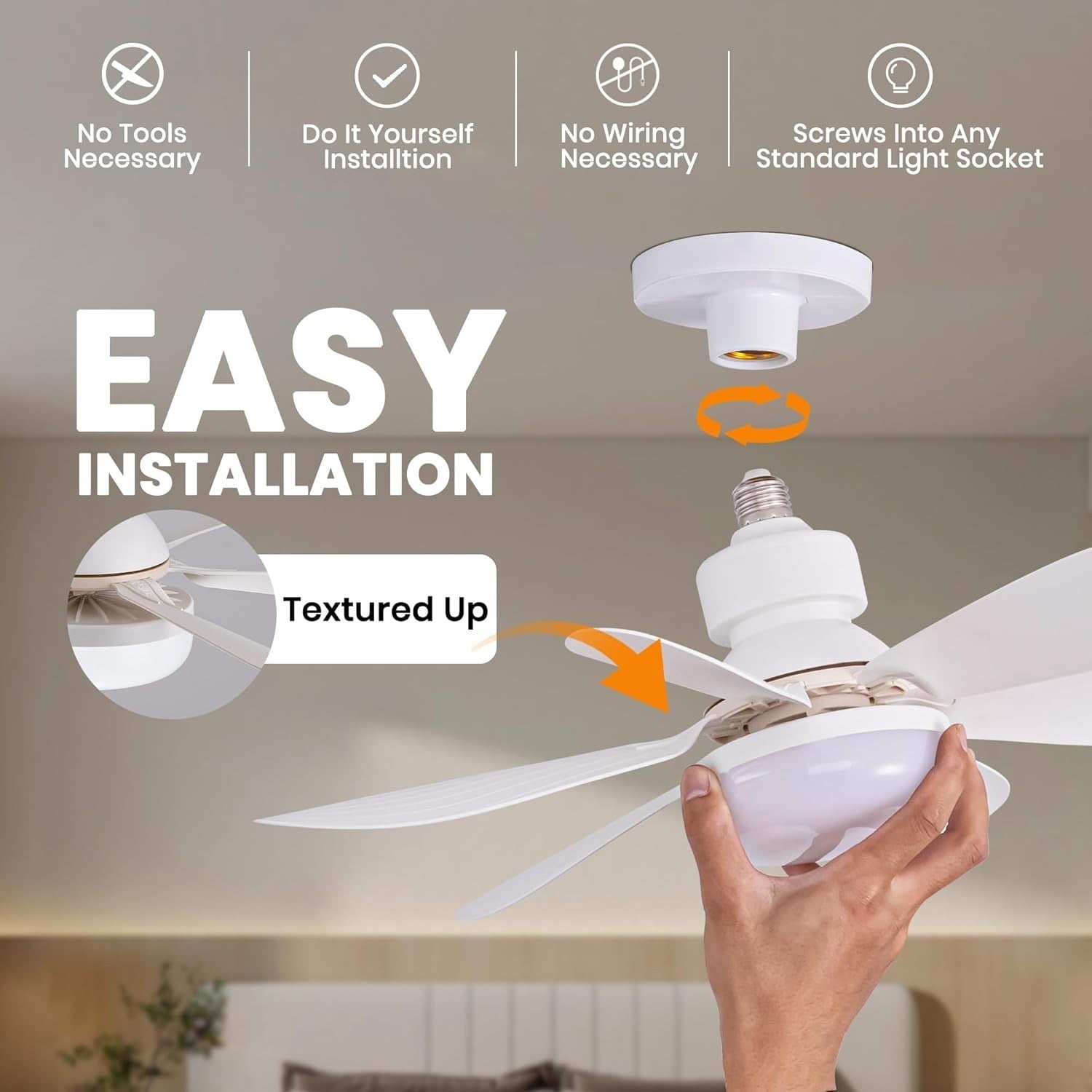 EcoAura Deckenventilatoren mit Steckdosen-Licht, mit Beleuchtung und Fernbedienung, 20,5 Zoll LED-Glühbirne, E26-Sockel, 3000–6000 K Helligkeit, dimmbar, Deckenventilatorleuchten zum Einschrauben für Schlafzimmer, Küche, Garage