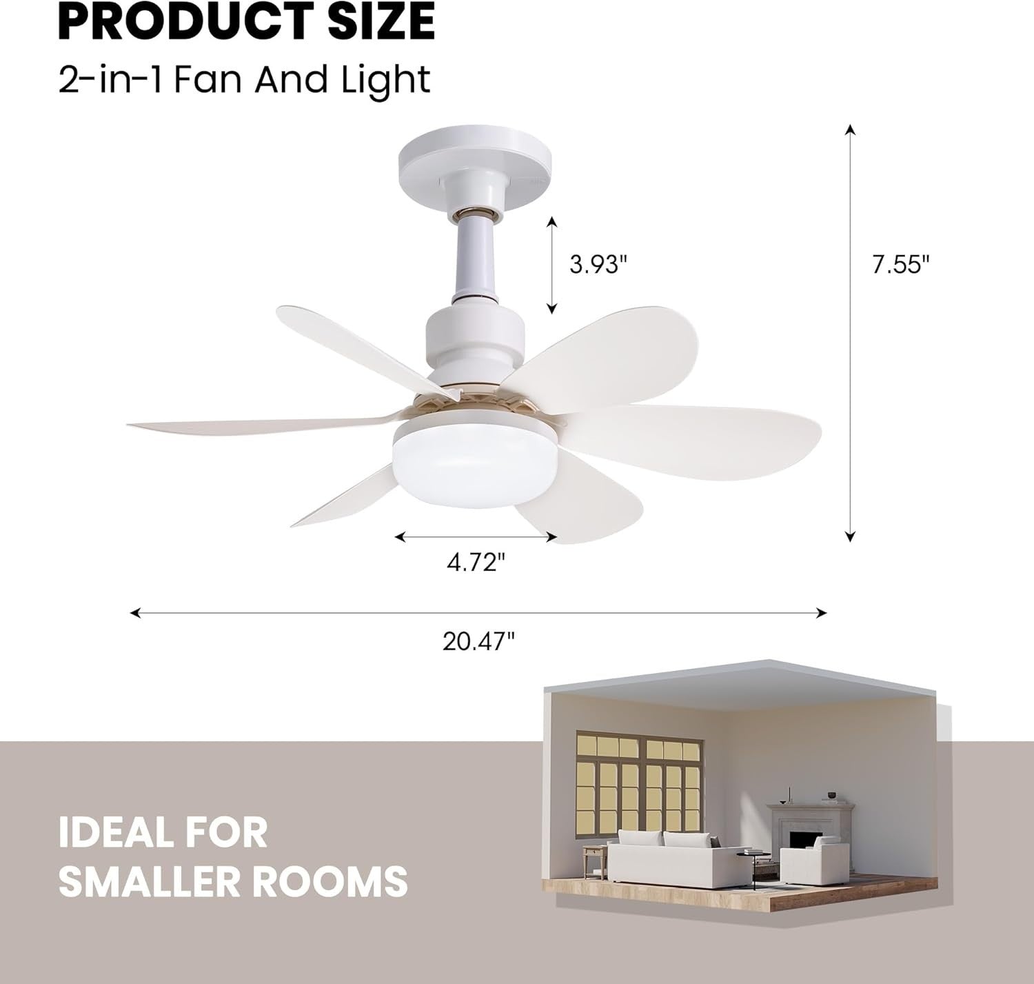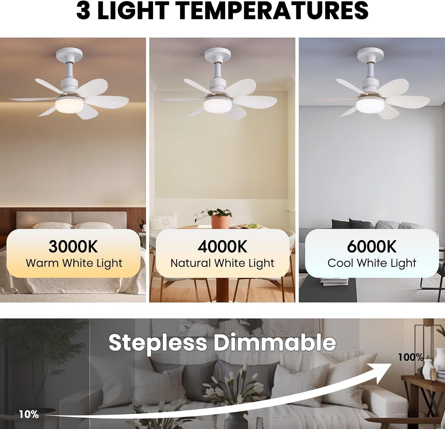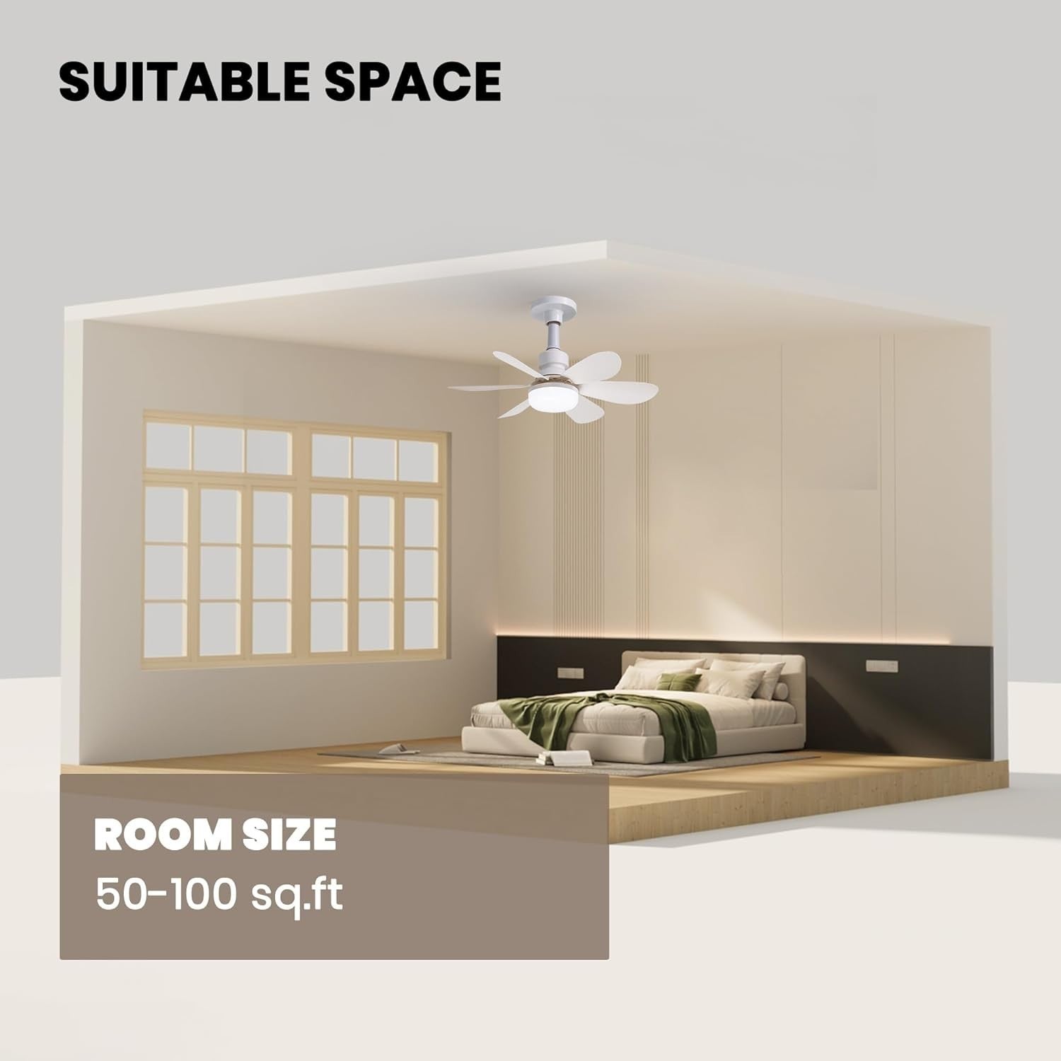 EcoAura Deckenventilatoren mit Steckdosen-Licht, mit Beleuchtung und Fernbedienung, 20,5 Zoll LED-Glühbirne, E26-Sockel, 3000–6000 K Helligkeit, dimmbar, Deckenventilatorleuchten zum Einschrauben für Schlafzimmer, Küche, Garage
