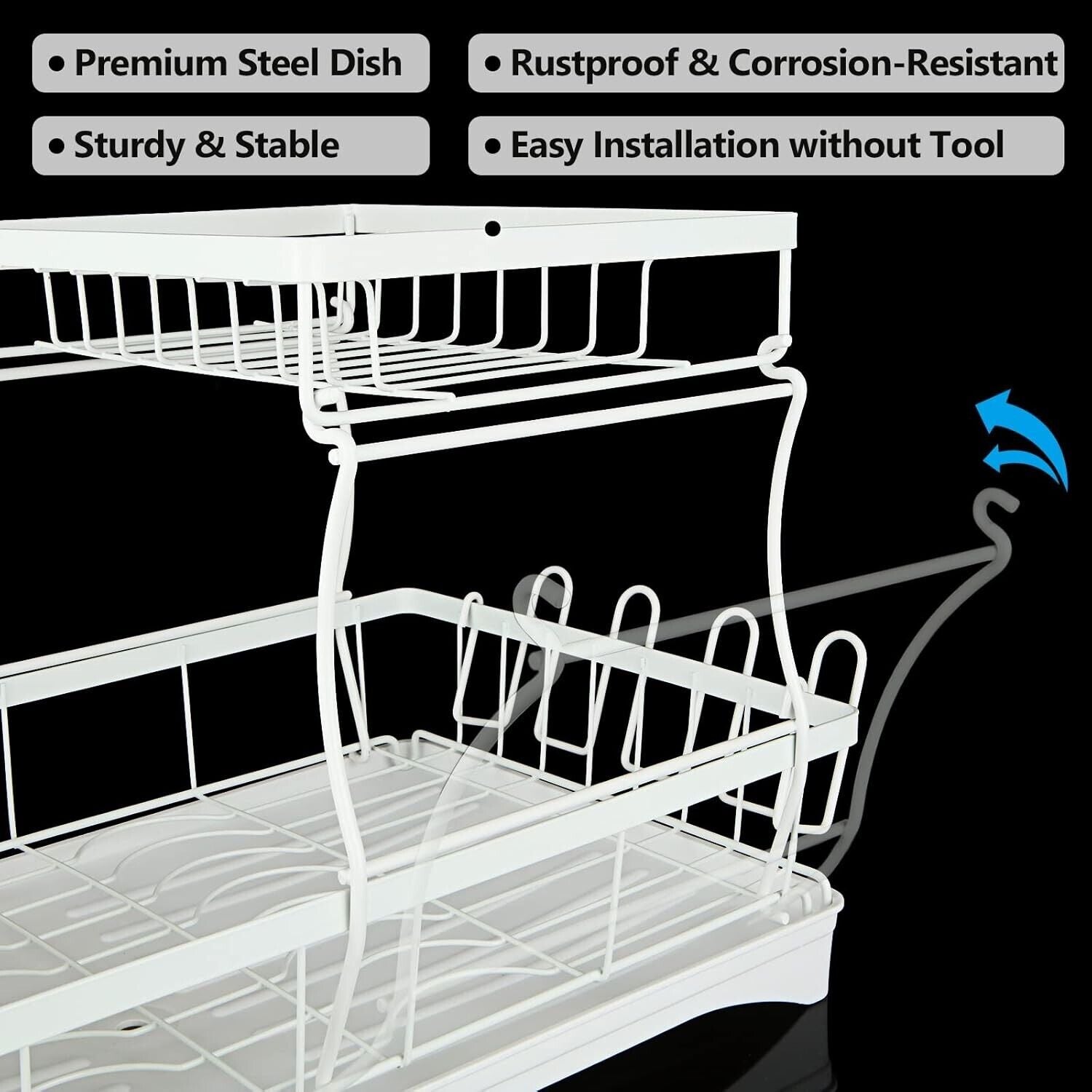 - 【Metall Geschirrabtropfer】Hergestellt aus hochwertigem Stahl, ist der Geschirr Geschirrabtropfer mit Ablaufauslauf robust, langlebig und nicht leicht zu verbiegen oder zu brechen während des Gebrauchs. Die weiß beschichtete Oberfläche ist rostfrei, korrosionsbeständig und kratzfest, perfekt für verschiedene Arten von Küchenstilen.