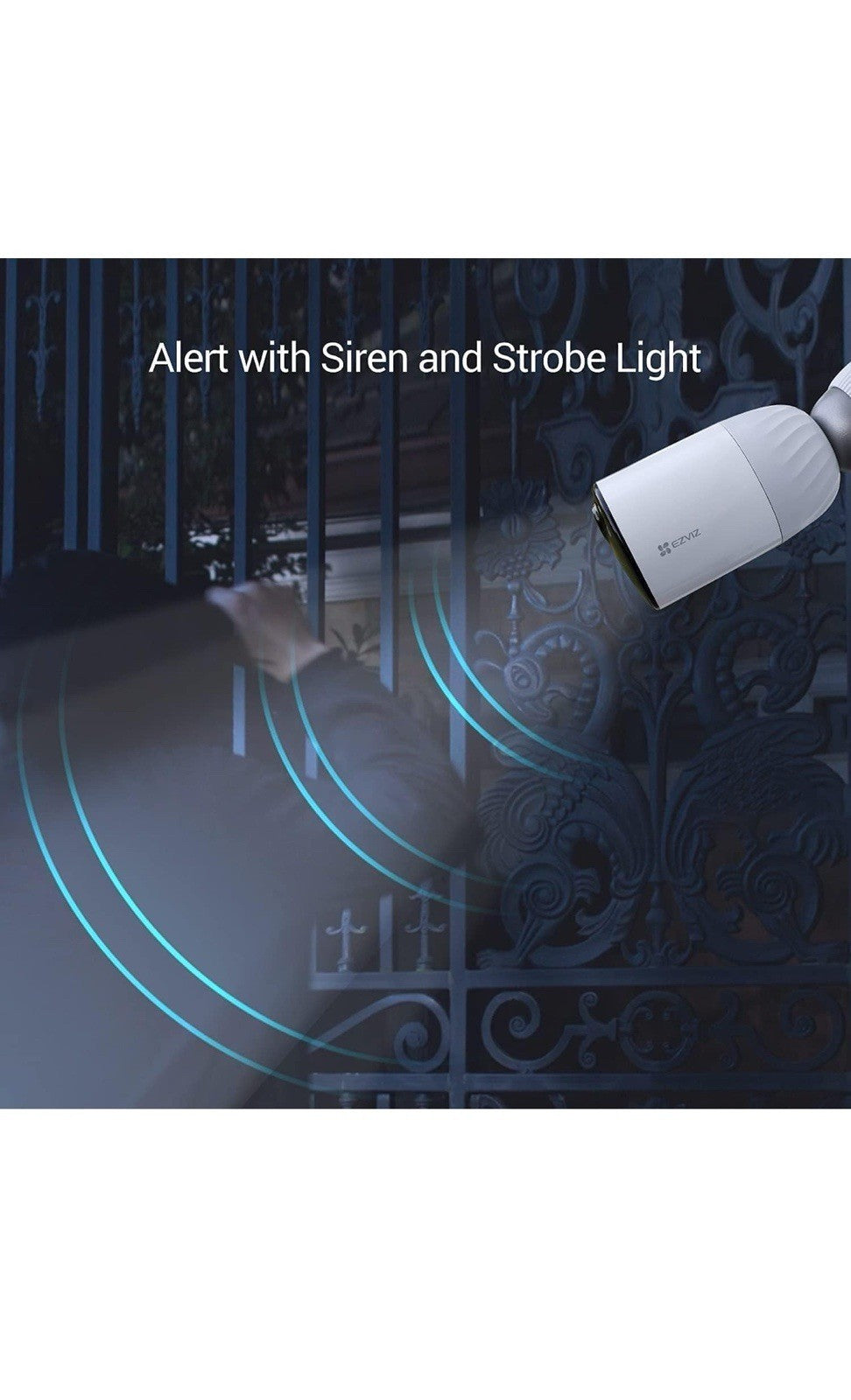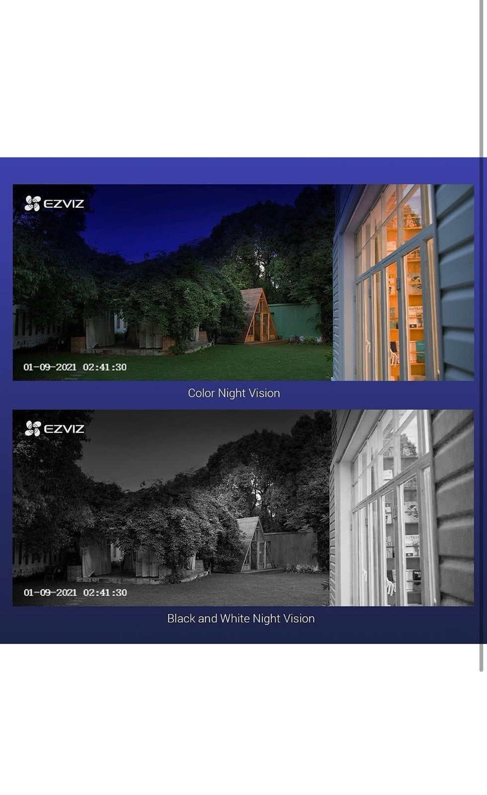 Zwei-Wege-Audio: Mit zwei integrierten Projektoren kann die Außenkamera auch bei pechschwarzer Dunkelheit lebendige Farbbilder wiedergeben. So können Sie die entscheidenden Details sehen. Mit der EZVIZ-App können Sie hören und sehen, was los ist, und mit Ihren Besuchern chatten.