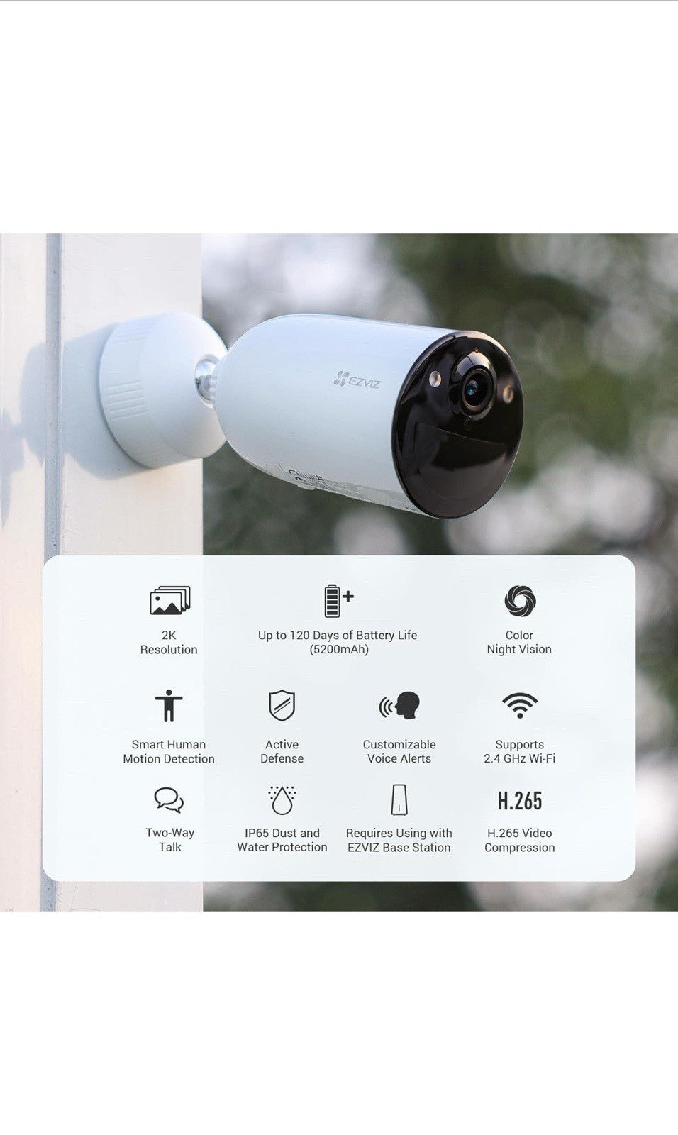 EZVIZ HB3 Add on Kamera, 2K Kabellose Überwachungskamera mit PIR-Bewegungserkennung, Farbnachtsicht, Zwei-Wege-Audio, 5200 mAh Akku, Alexa-kompatibel, NUR funktioniert mit HB3 Base