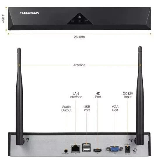 Floureon 2,0 MP kabelloses CCTV Heim Überwachungskamerasystem automatisch kaskadierender NVR