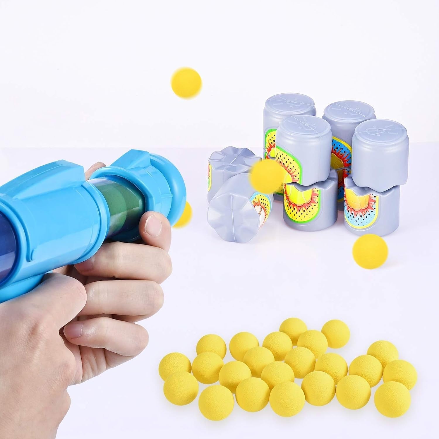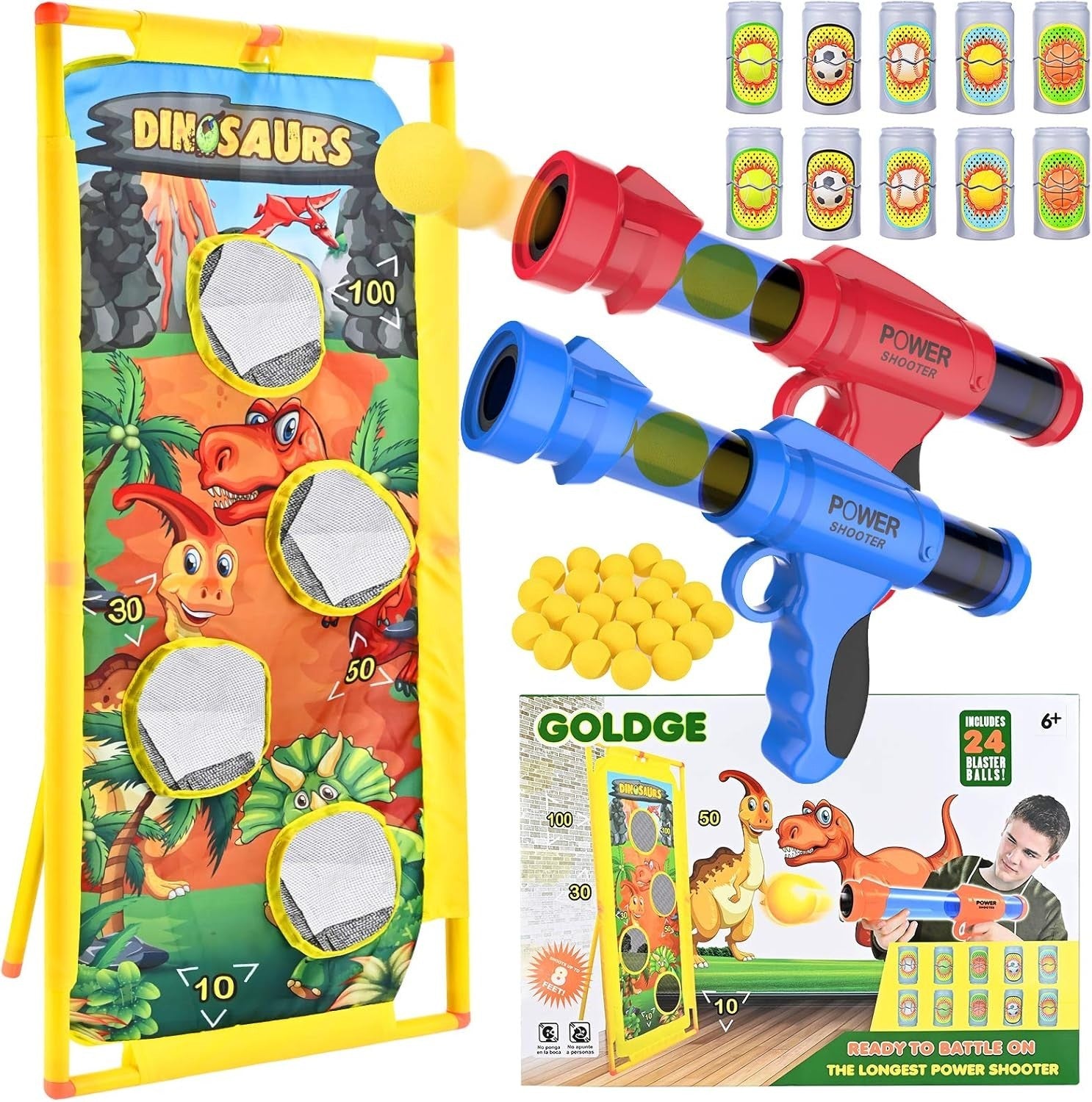 GOLDGE Zielscheiben-Spielzeug, 37 Teile, Blaster, Spielzeug-Set mit 2 Spielzeugpistole, 1 Zielscheibe, 24 Schaumstoffkugeln, 10 Dosen, Outdoor-Spiel für Jungen und Mädchen