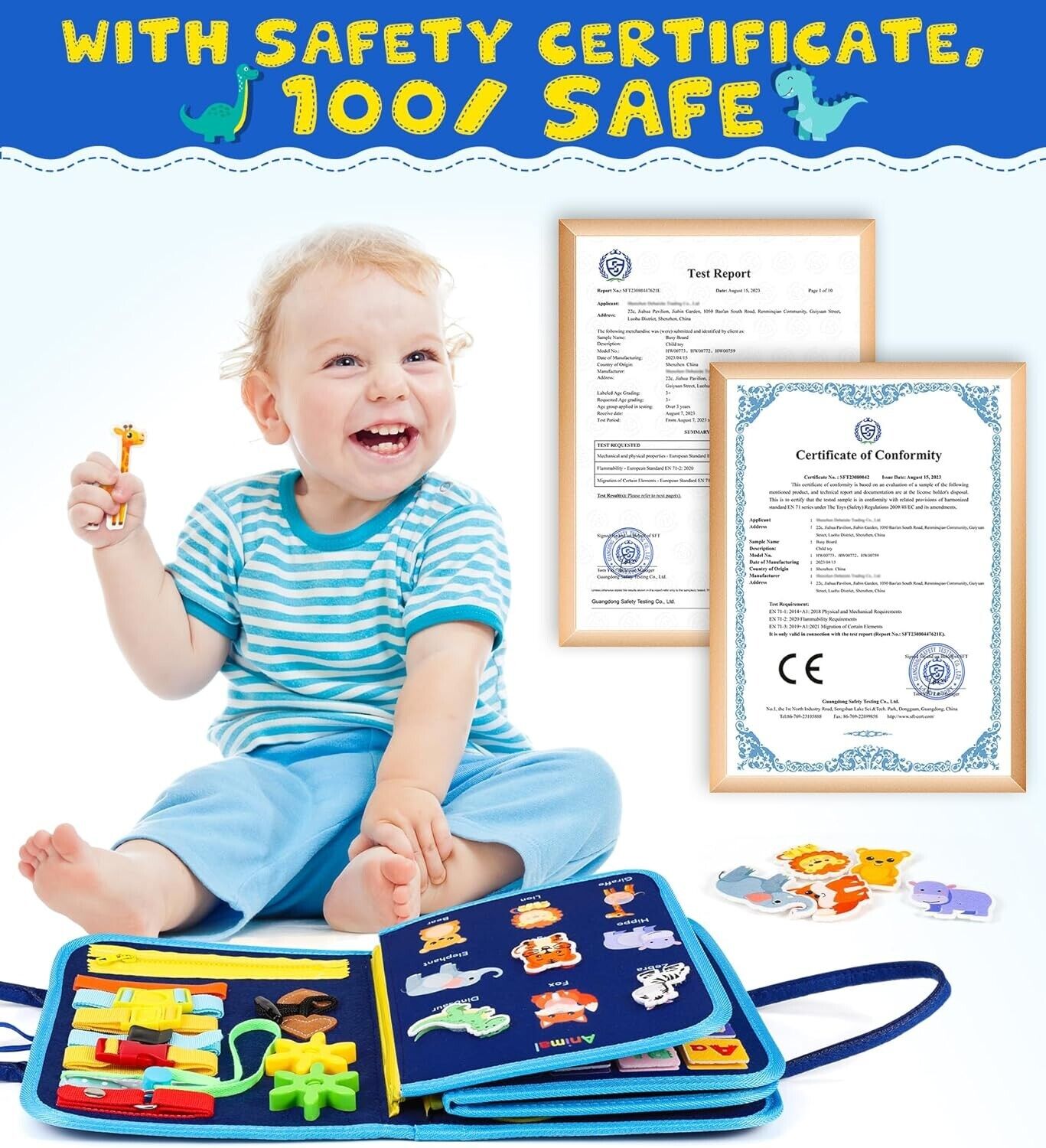 - 【Sicheres und langlebiges Lernspielzeug】- Das activity board für kinder sensorisches Spielzeug besteht aus hochwertigen weichen Filzstoffen und ist ungiftig, sanft zur Haut und frei von scharfen Kanten. Alle Teile sind sicher befestigt, sodass Kinder sicher und geschützt damit spielen können.