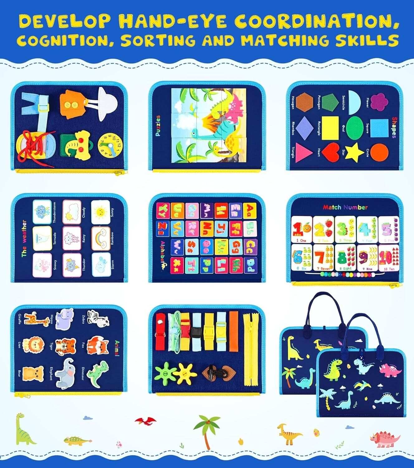 Gontence Busy Board für Kinder - Activity Board Montessori Spielzeug für 1 2 3 4 5 Jahre Junge Mädchen | Motorik Lernspielzeug Kleinkind Sensorik Spielzeug Quiet Book (Dinosaurier)