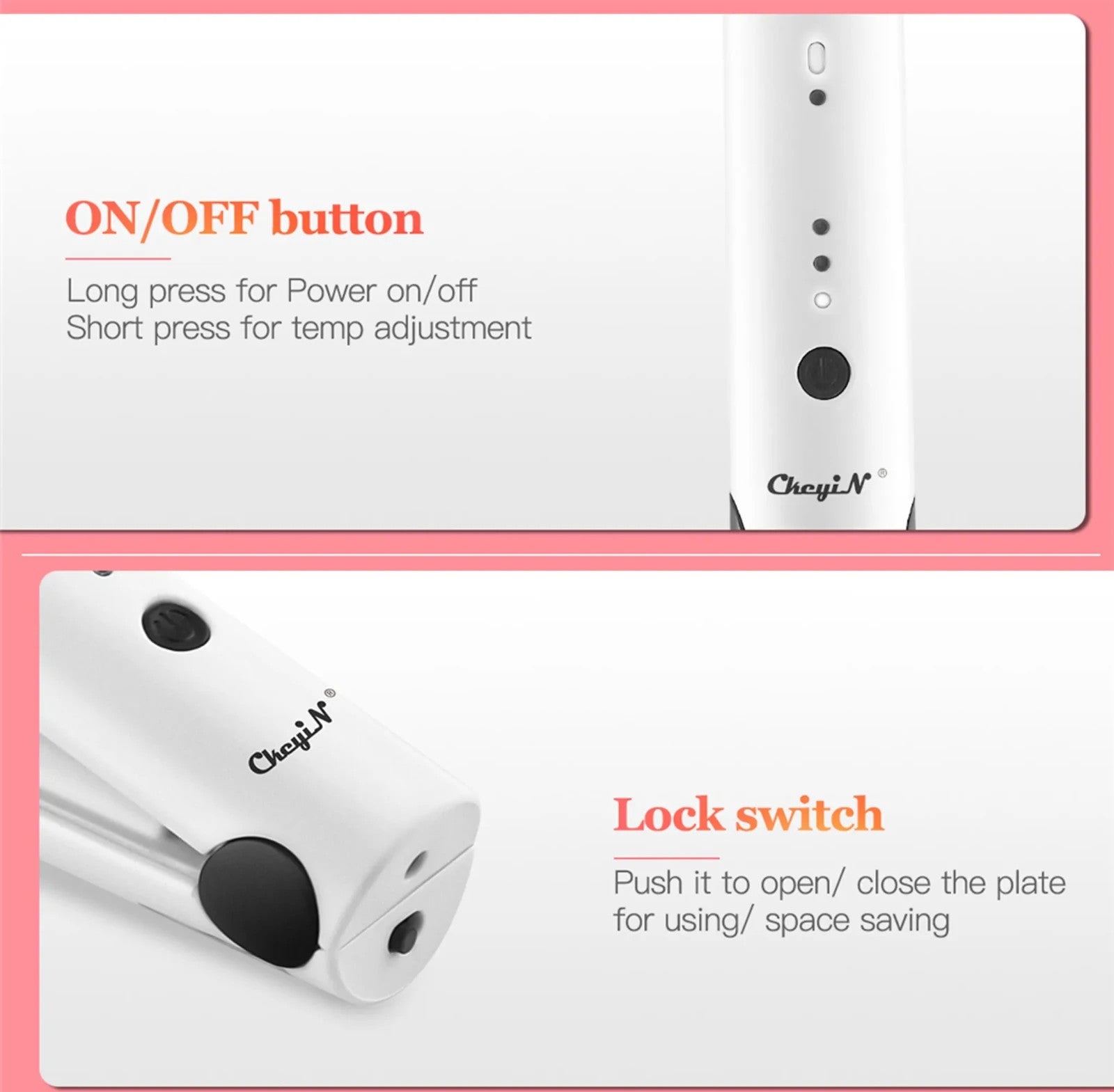• Das kabellose, wiederaufladbare USB-Flacheisen ist für den Einsatz auf der ganzen Welt geeignet und ist kompakt genug, um gut in Ihre Handtasche oder Waschtasche zu passen, es wird Ihr Retter sein, wenn Sie unterwegs ein schnelles Touch-up brauchen - besonders bei einem Date.