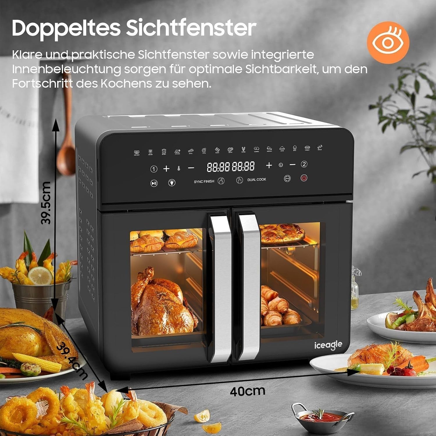 Heißluftfritteuse 23L Dual Zone XXL Airfryer mit French Door | Heissluftfritte