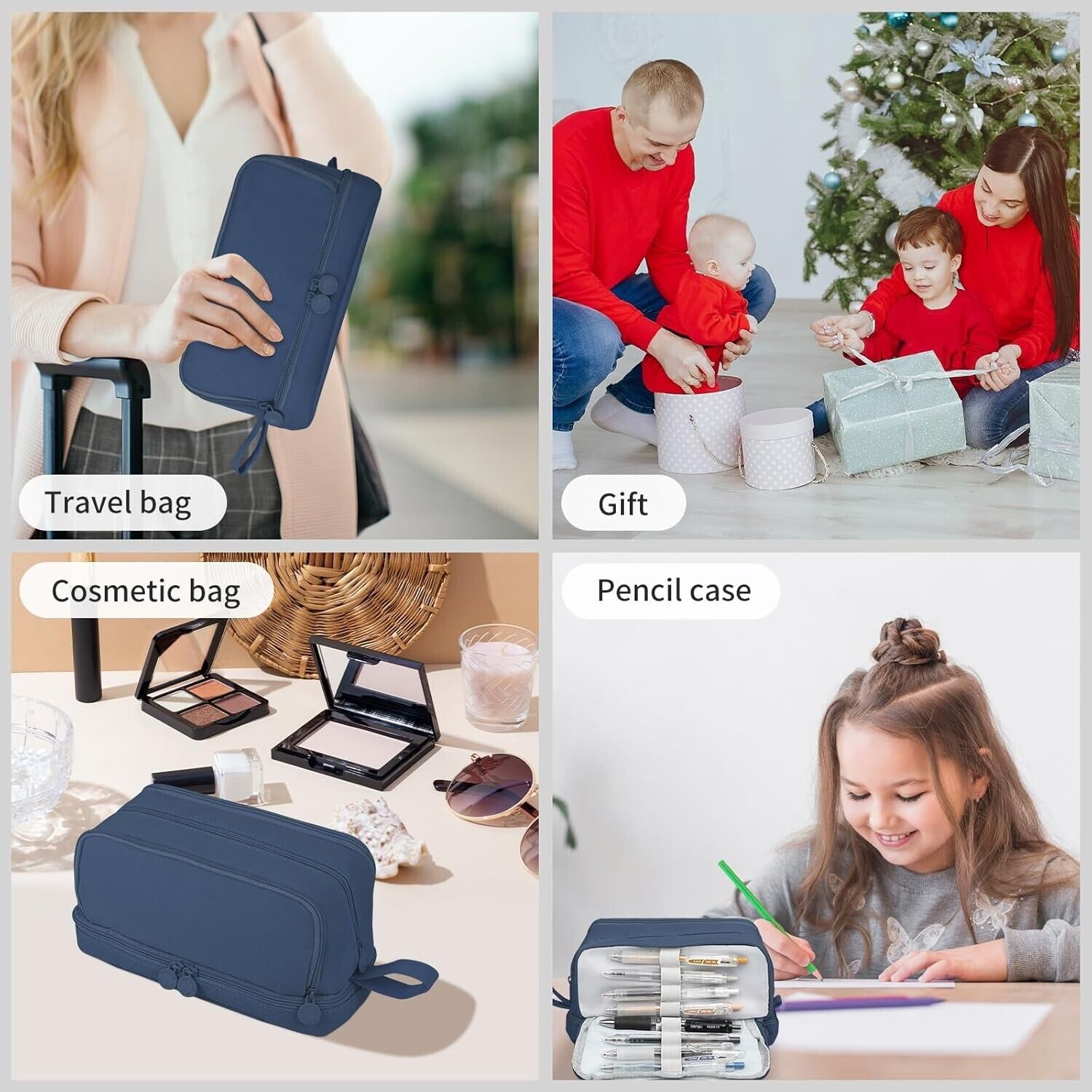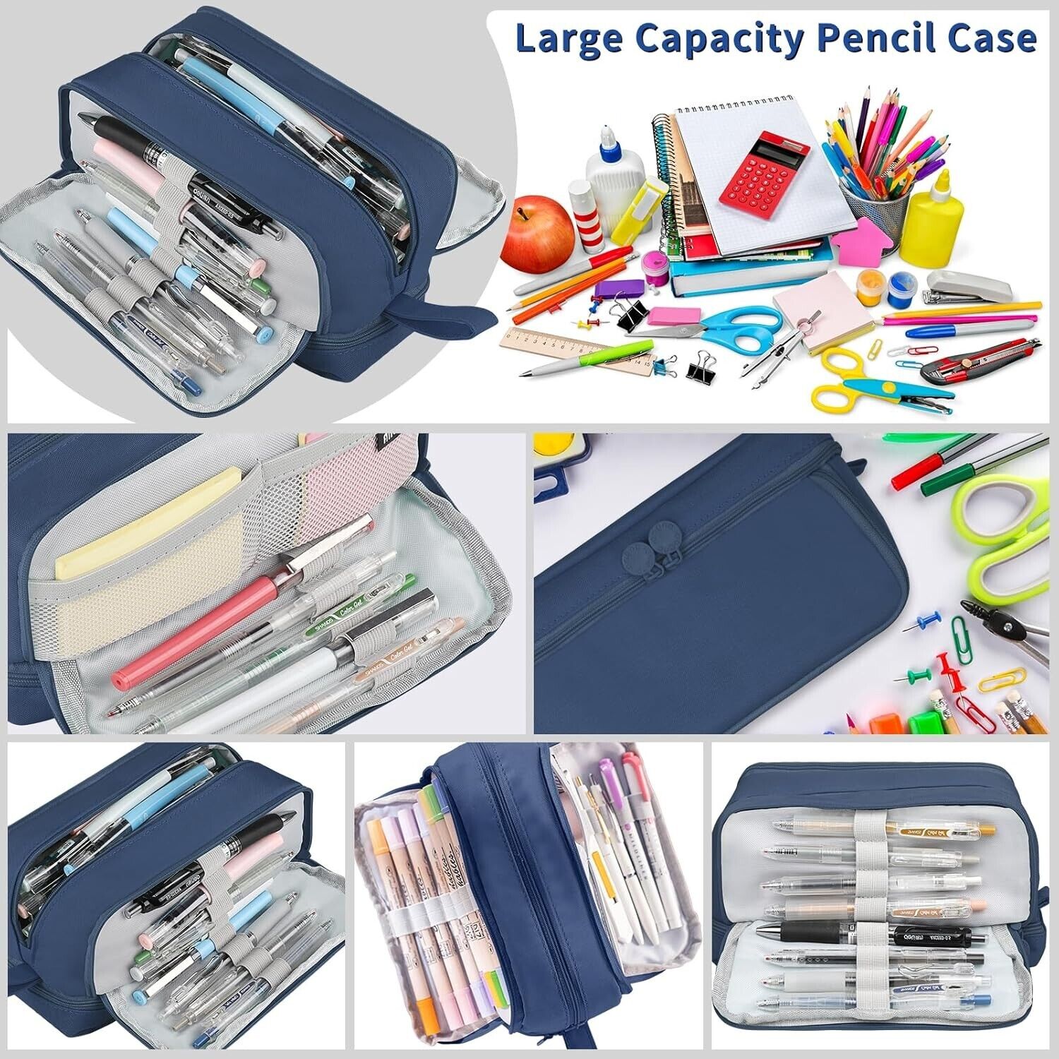 Federmäppchen Große Mädchen mit 3+1 Fächer Große Kapazität Jungen Mäppchen Federtasche Teenager Federtasche Groß Stifte Mäppchen Geeignet Pencil Case Für Kinder Erwachsene Schule, Dunkelblau