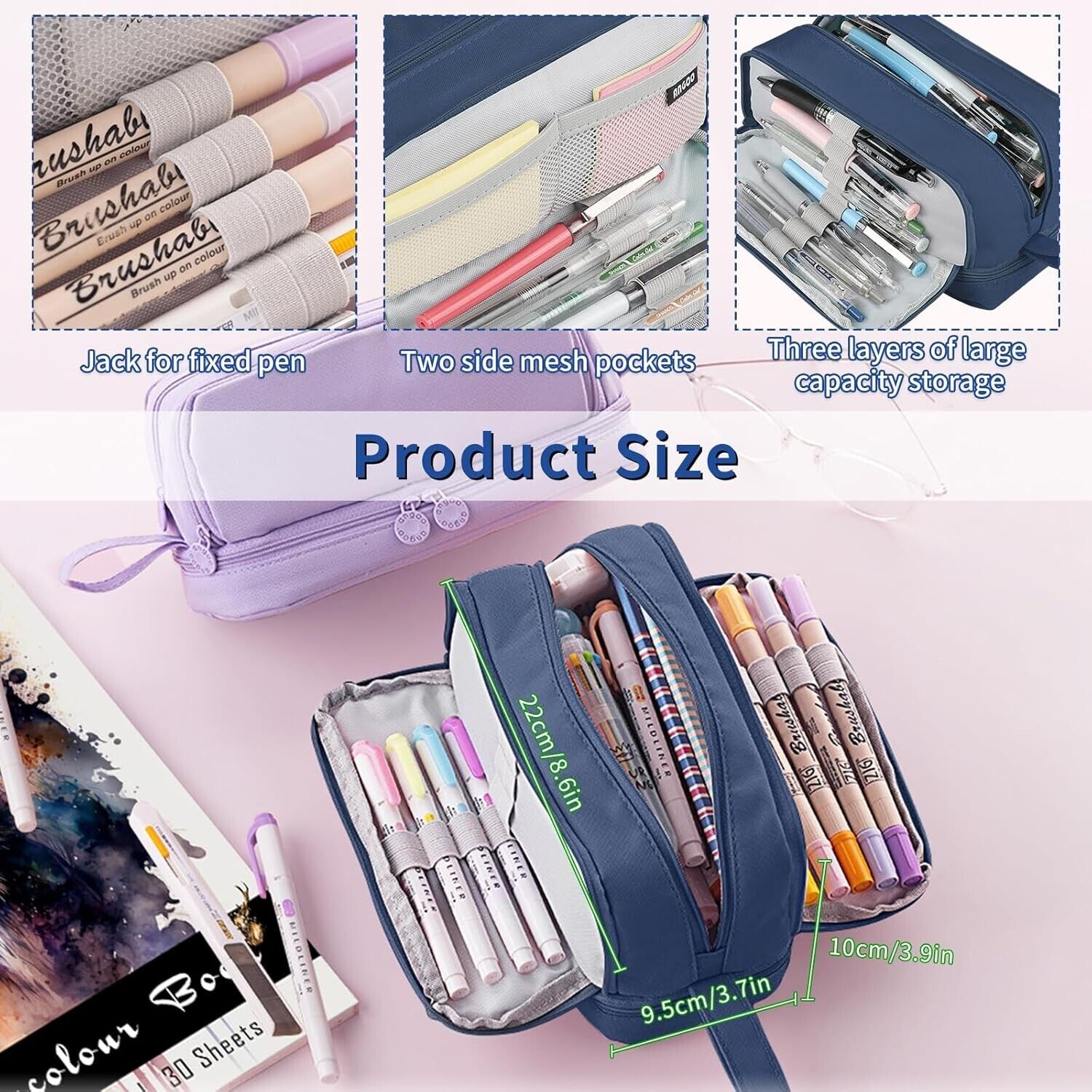 HIQE-FL Federmäppchen Mäppchen 3 Fächer große Kapazität Teenager Schule/Büro