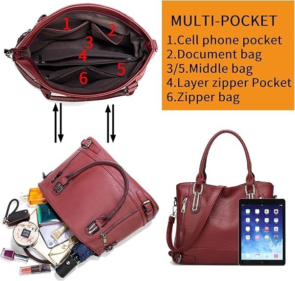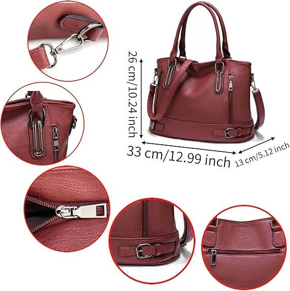 - Multifunktionales Design: Diese Damen-Tragetasche hat eine Größe von 13,2" x 9,3" x 5,1" (L x H x B) und einen verstellbaren Tragegurt von 26" bis 48". Lässt sich leicht in eine Umhängetasche oder Umhängetasche verwandeln Tasche, die unterschiedlichen Styling-Bedürfnissen gerecht wird und Ihnen ermöglicht, bei verschiedenen Anlässen modisch und elegant zu bleiben.