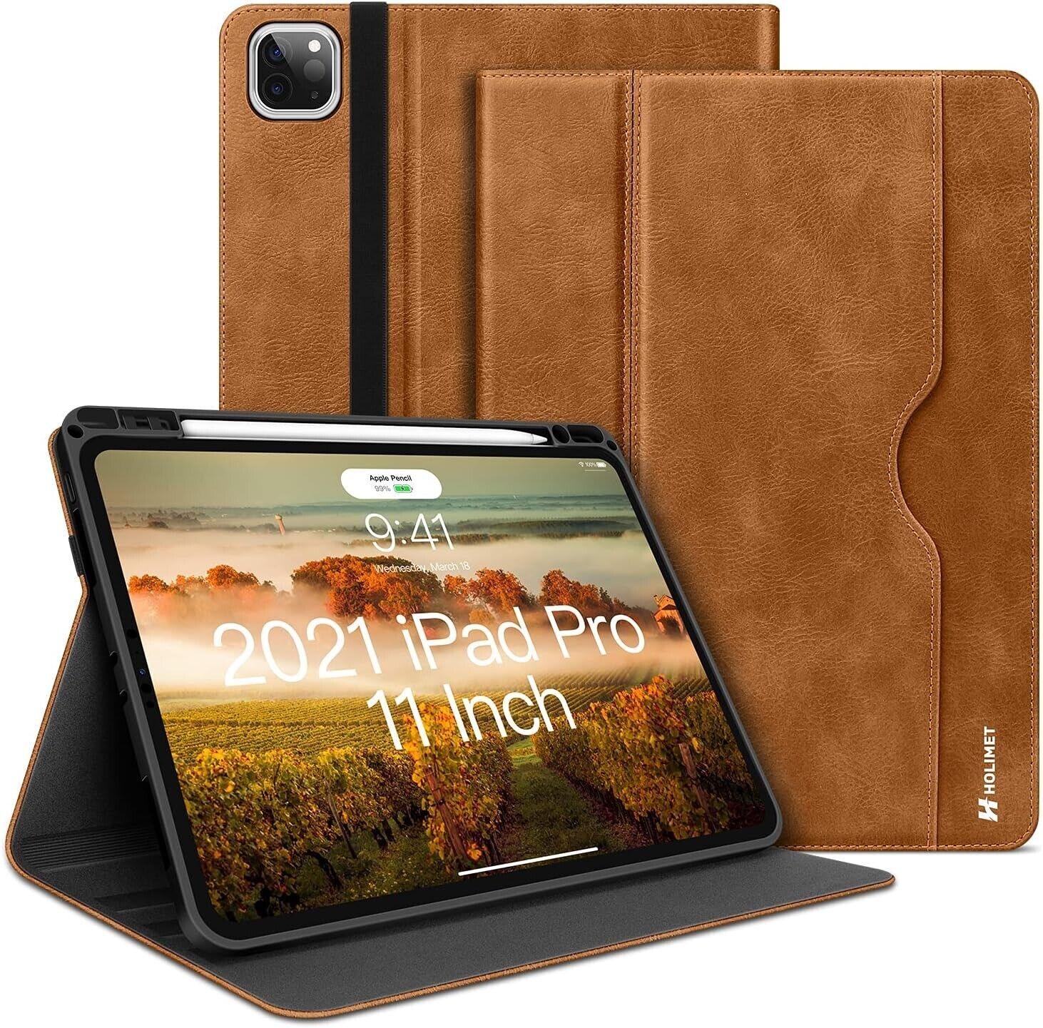 HOLIMET iPad Pro 11 Hülle 2021 4/3/2. Generation Hülle 2021/2020 mit Stifthalter, PU-Leder Schutzhülle TPU-Rückseite Stoßfest Auto Sleep/Wake, Pairing/kabelloses Laden für iPad Pro 11 Zoll