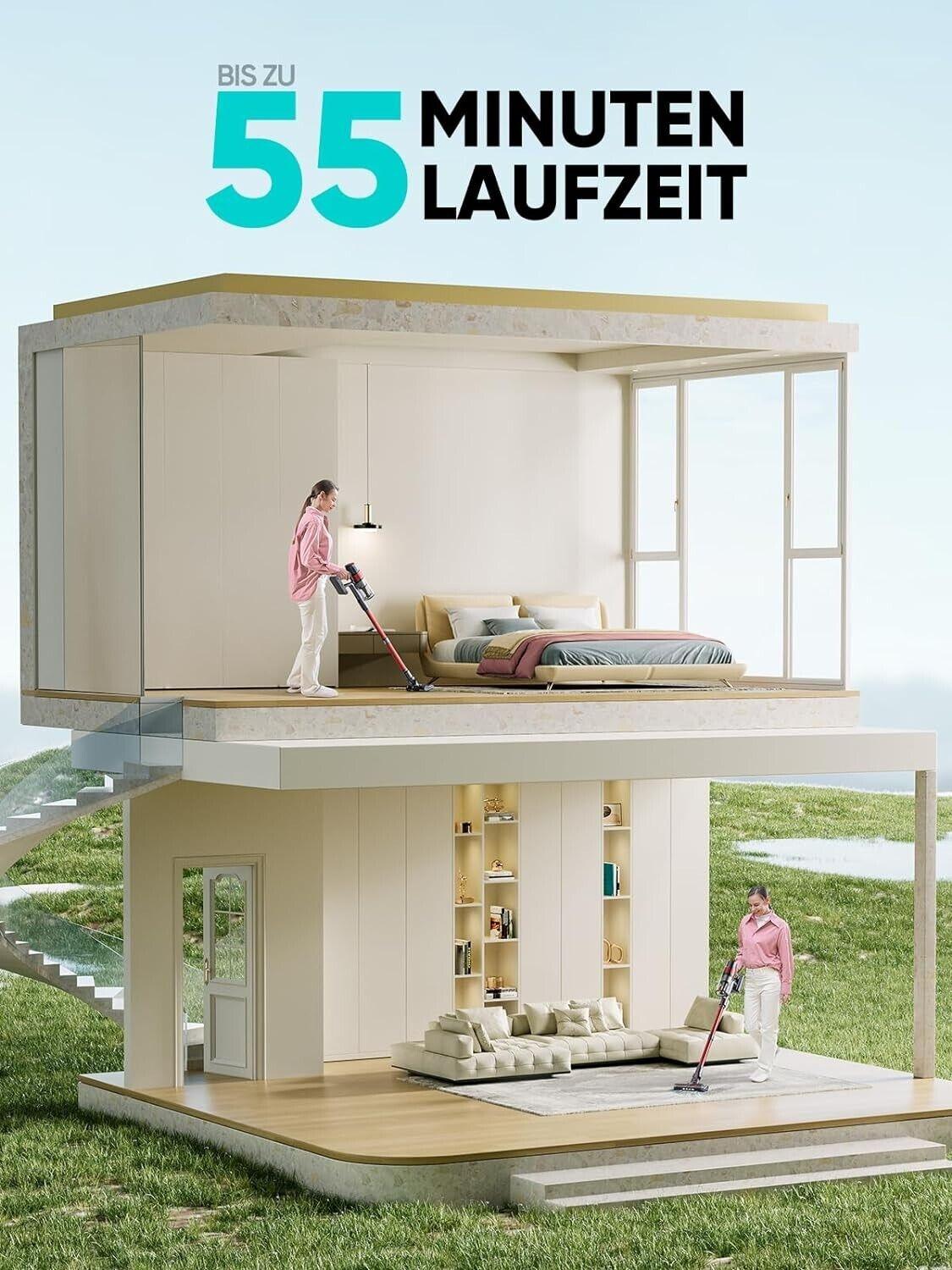 HONITURE Akku-Staubsauger S13 Pro 38000Pa/450W, kabelloser Staubsauger, 55 Min.