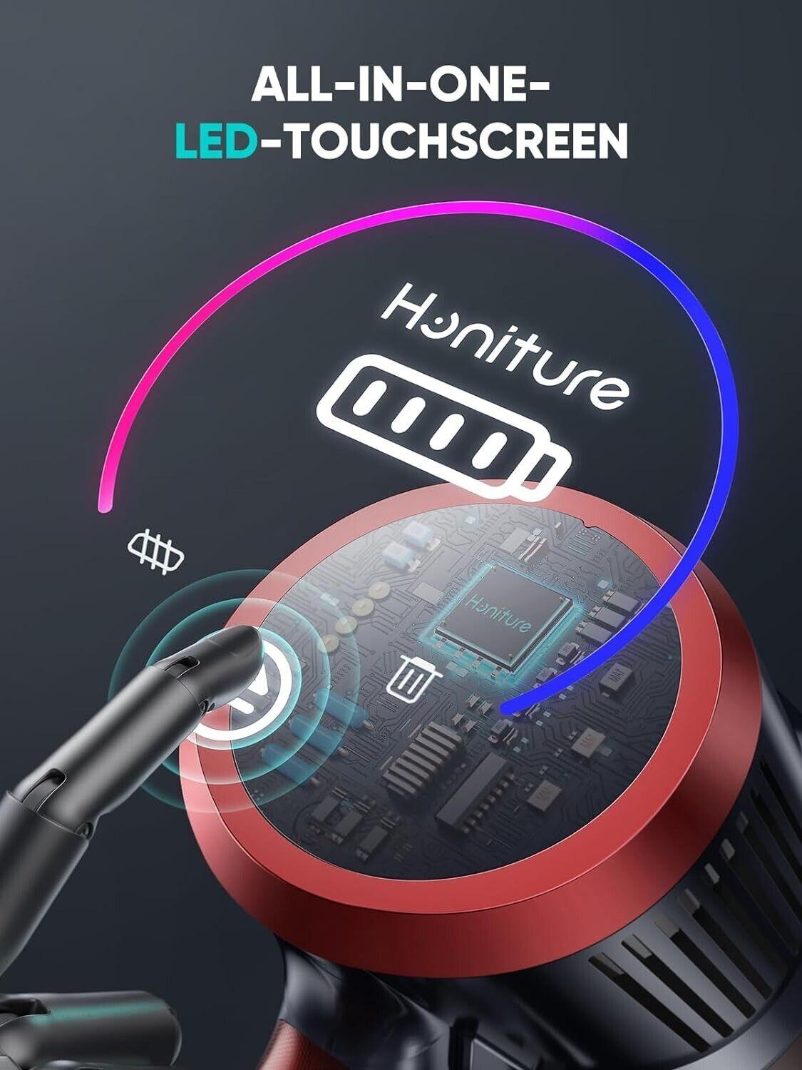 HONITURE Akku-Staubsauger S13 Pro 38000Pa/450W, kabelloser Staubsauger, 55 Min. Laufzeit, mit Touchscreen/1,5-l-Becher, Anti-Tangle-Bürstengriff, Staubsauger für Teppich/Hartböden/Tierhaare