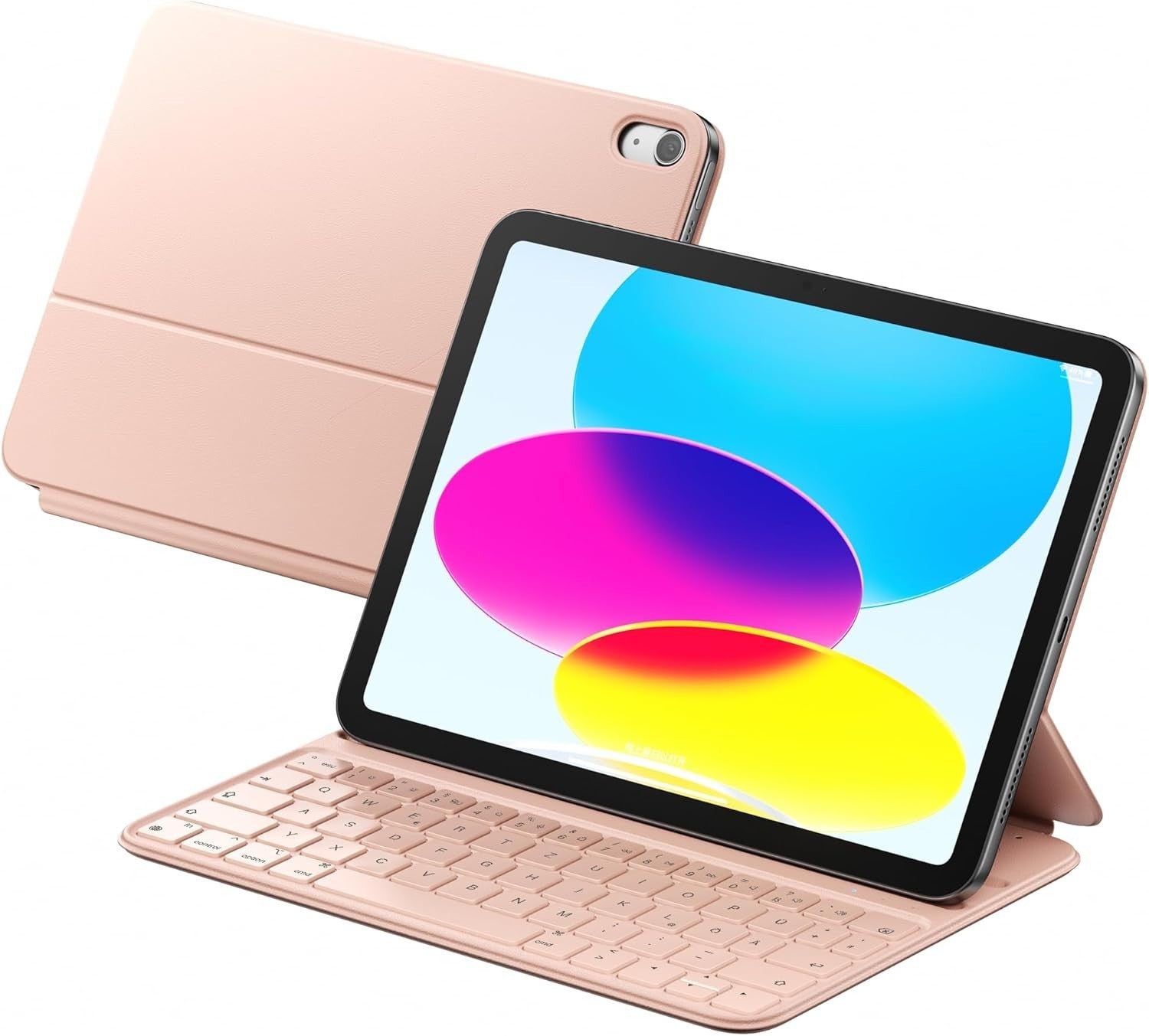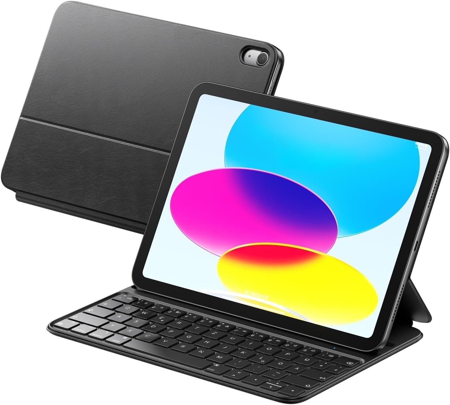 HOU Slim Bluetooth Tastatur Hülle für iPad 10 - 10.9 Zoll Kunstleder-Optik Hülle mit Tastatur, Ergonomischer Winkel