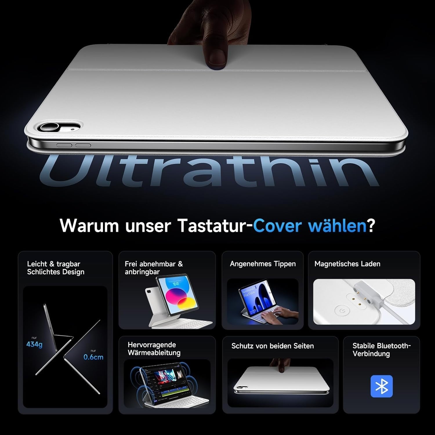 • 【Kompatibilität】Bevor Sie einen Kauf tätigen, überprüfen Sie bitte die iPad-Modellnummer in [Einstellungen > Allgemein > Über] und verweisen Sie auf die Kompatibilitätstabelle. Es ist NUR mit dem 10,9-Zoll-iPad der 10. Generation 2022 (Modellnummer: A2696/A2777/A2757) & dem 11-Zoll-iPad der 11. Generation A16 2025 kompatibel.
