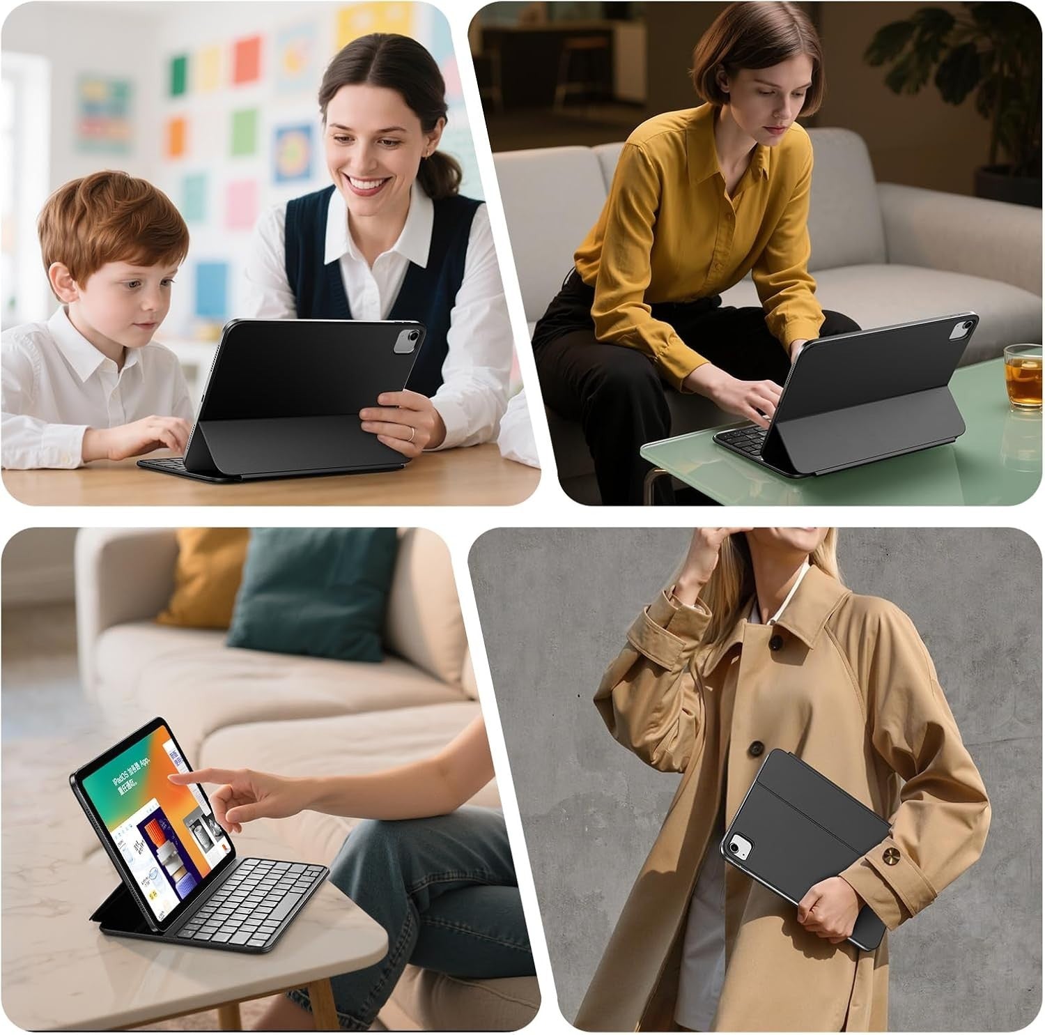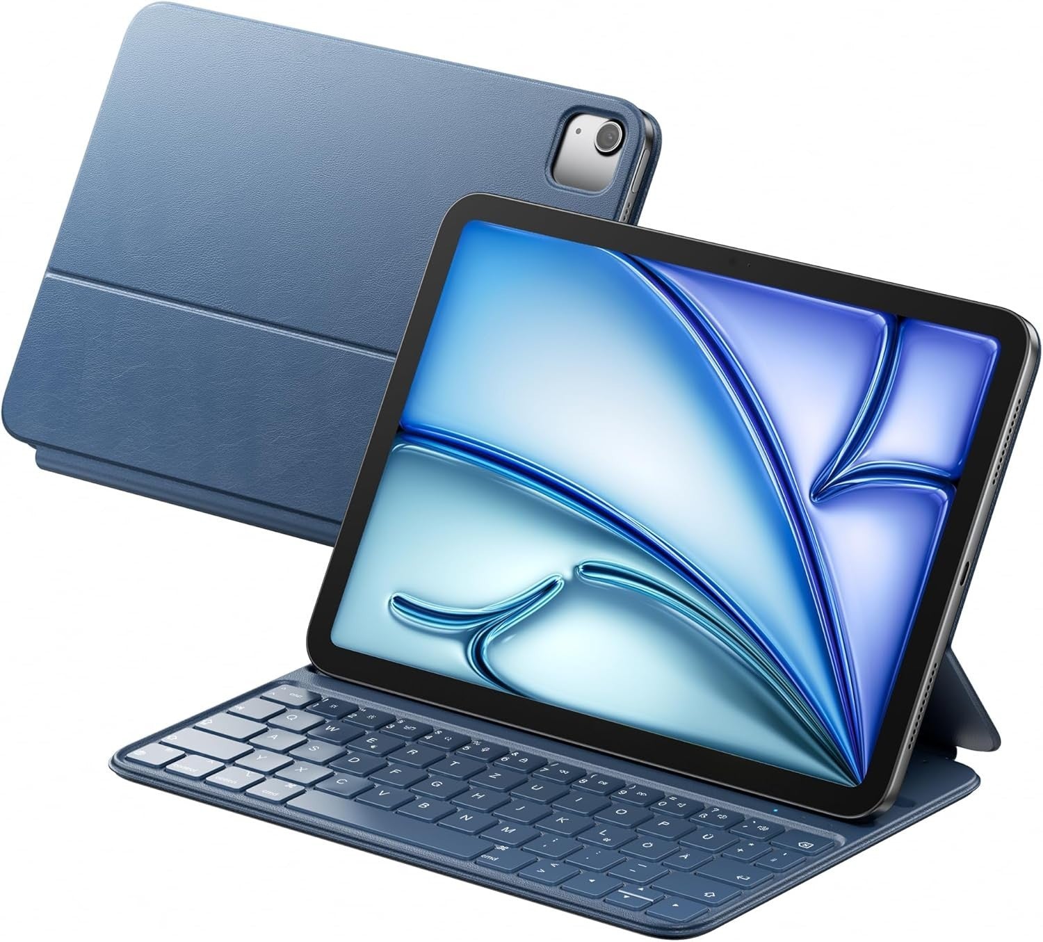 HOU Folio Tastatur für iPad Pro 11 (2018-2022), Air 11 Zoll (M3/M2, 2025/2024), Air 5/4 Generation, Slim Hautgefühl - Hülle, Einstellbarer Winkel