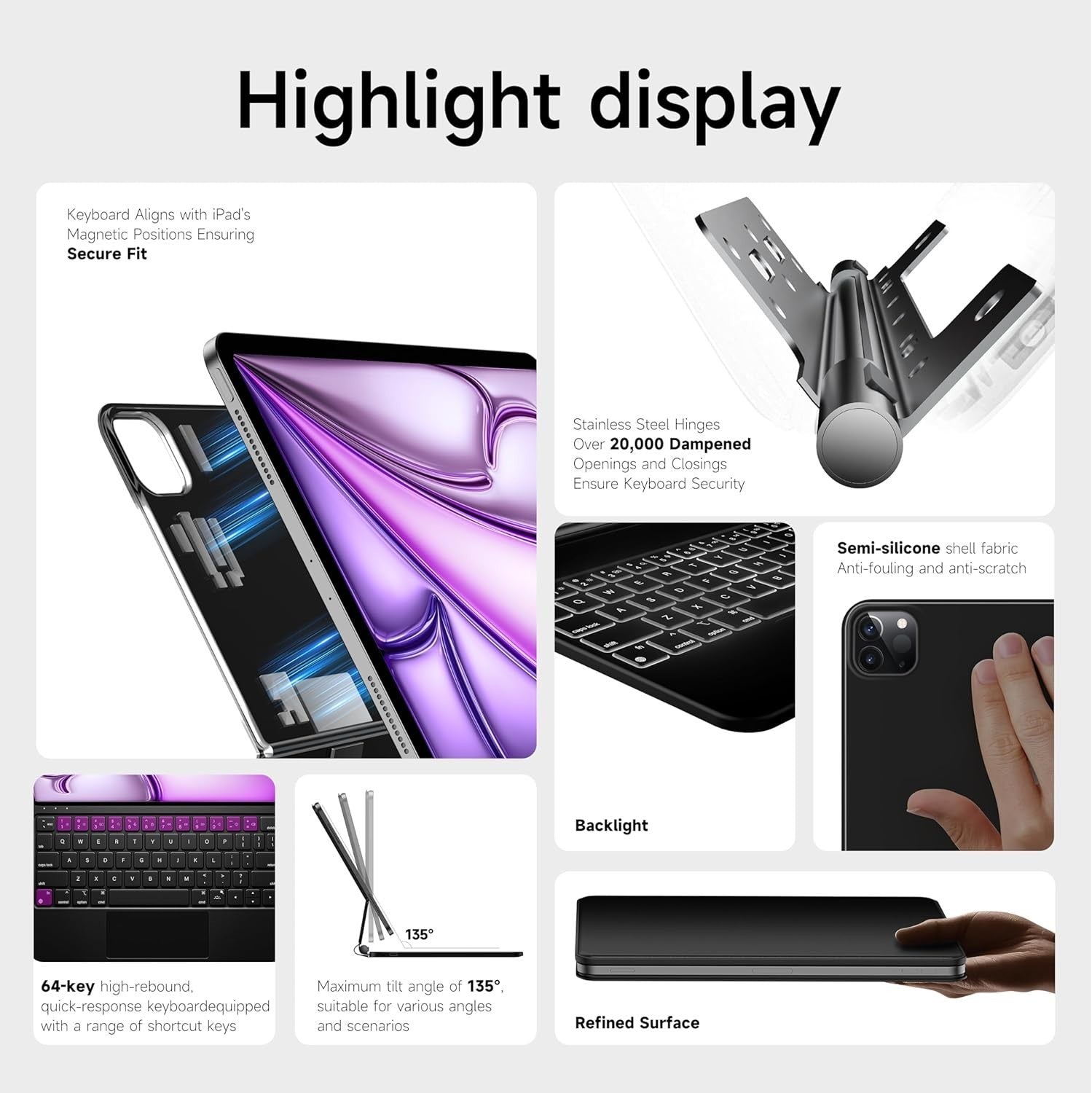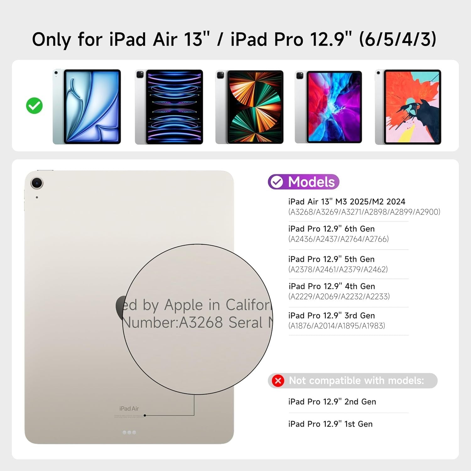 • Funktioniert nur mit 12,9 Zoll iPad Pro (6. Generation, 5. Generation, 4. Generation, 3. Generation). Freischwingender Ständer und starke magnetische Anziehungskraft halten das iPad fest und stabil wie ein Laptop.