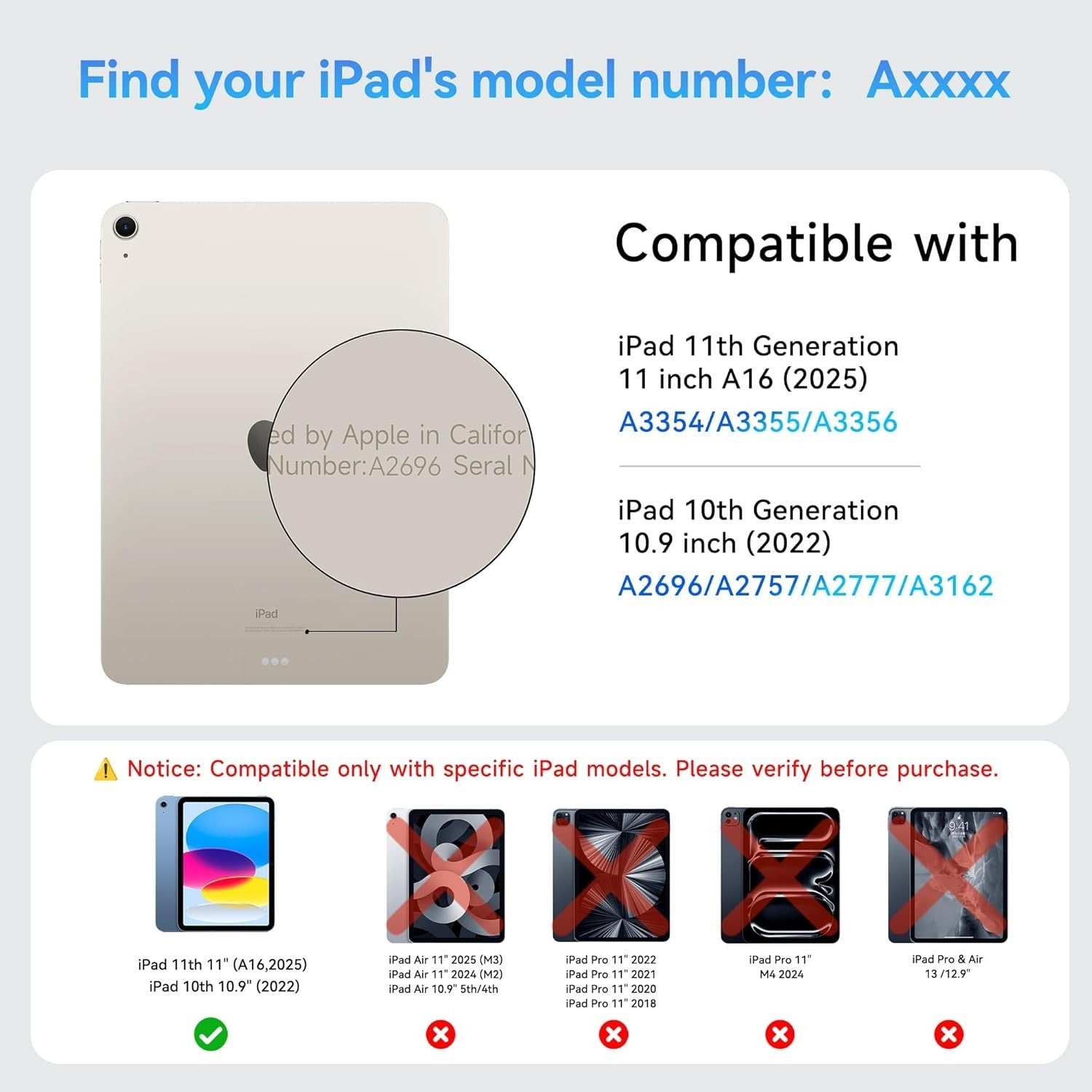 • 【Kompatibilität】Speziell für Ihr iPad 10,9 Zoll, 10. Generation 2022 (Modellnummer: A2696/A2777/A2757) entwickelt. Hinweis: Es ist nicht mit anderen iPad-Modellen kompatibel.