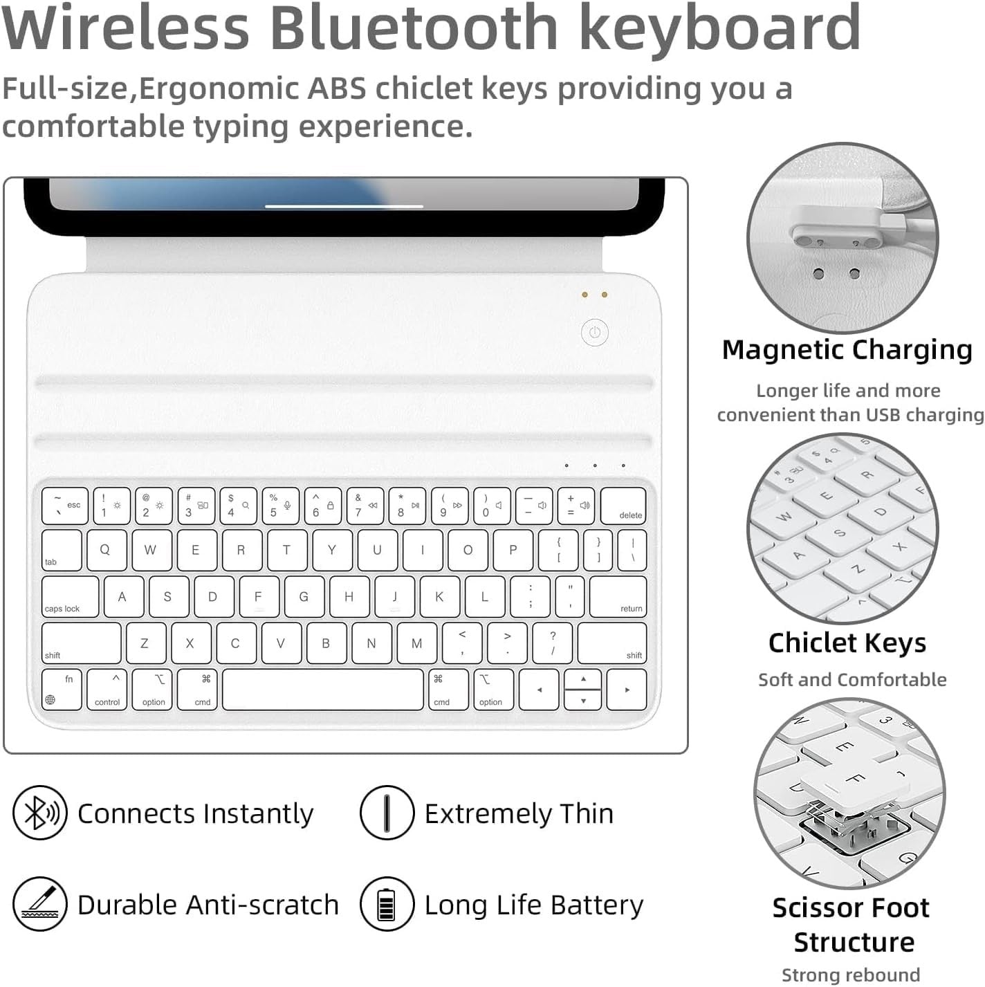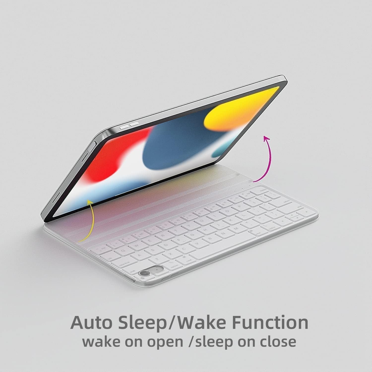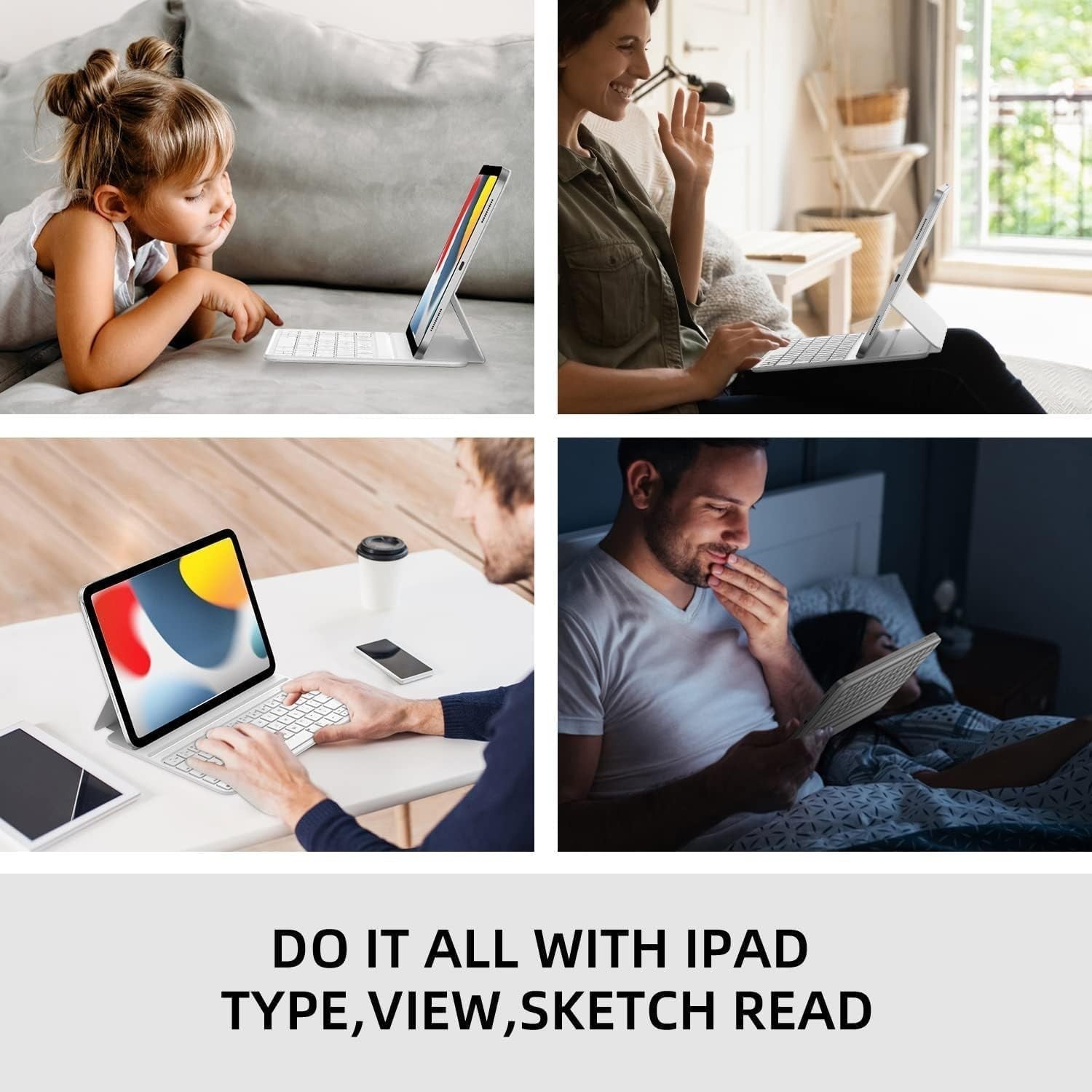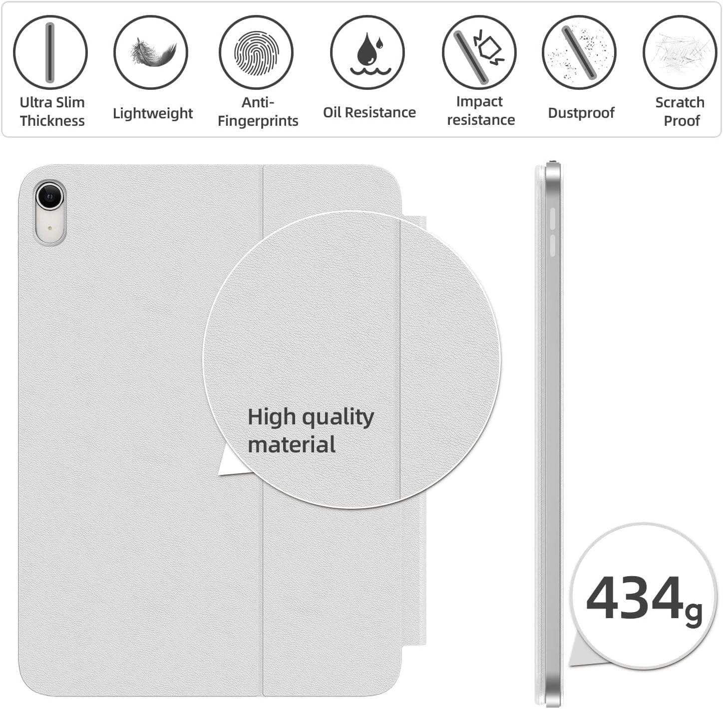 • 【Felsenfest】Die intelligente Magnetanordnung auf der Rückseite und Unterseite kann Ihr iPad 10th fest aufnehmen und stabilisieren, sodass es sich beim Tippen, Lesen, Skizzieren und Betrachten mit dem iPad nicht löst oder bewegt.