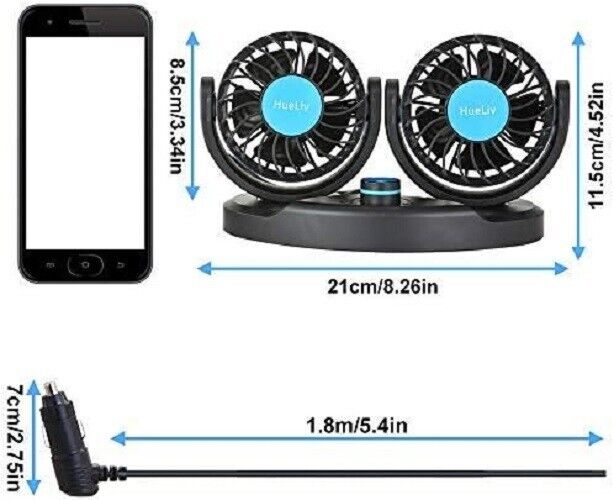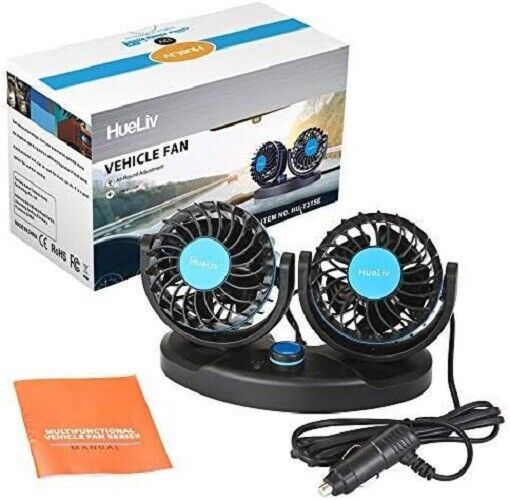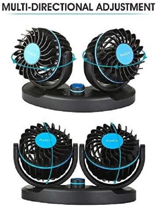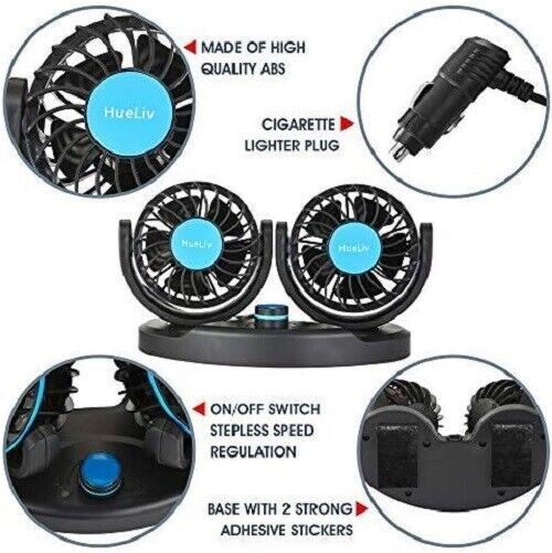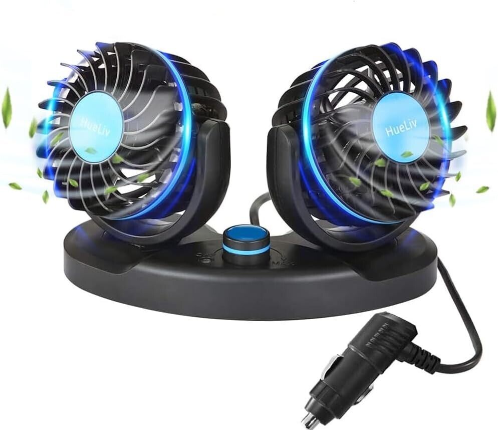 HueLiv Auto Ventilator 12V Doppellüfter Auto Kfz Lüfter Auto-Kühlluftventilator mit Zigarettenanzünder und Stufenlose Geschwindigkeit Einstellbare Ventilatoren für Auto Van SUV RV Boot