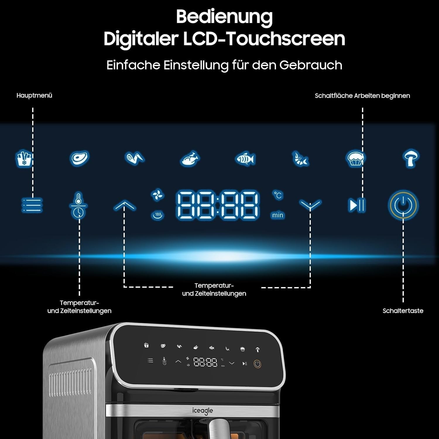 Iceagle AF619AWD Heißluftfritteuse 6,7 L XXL Ohne Fett | 2200W