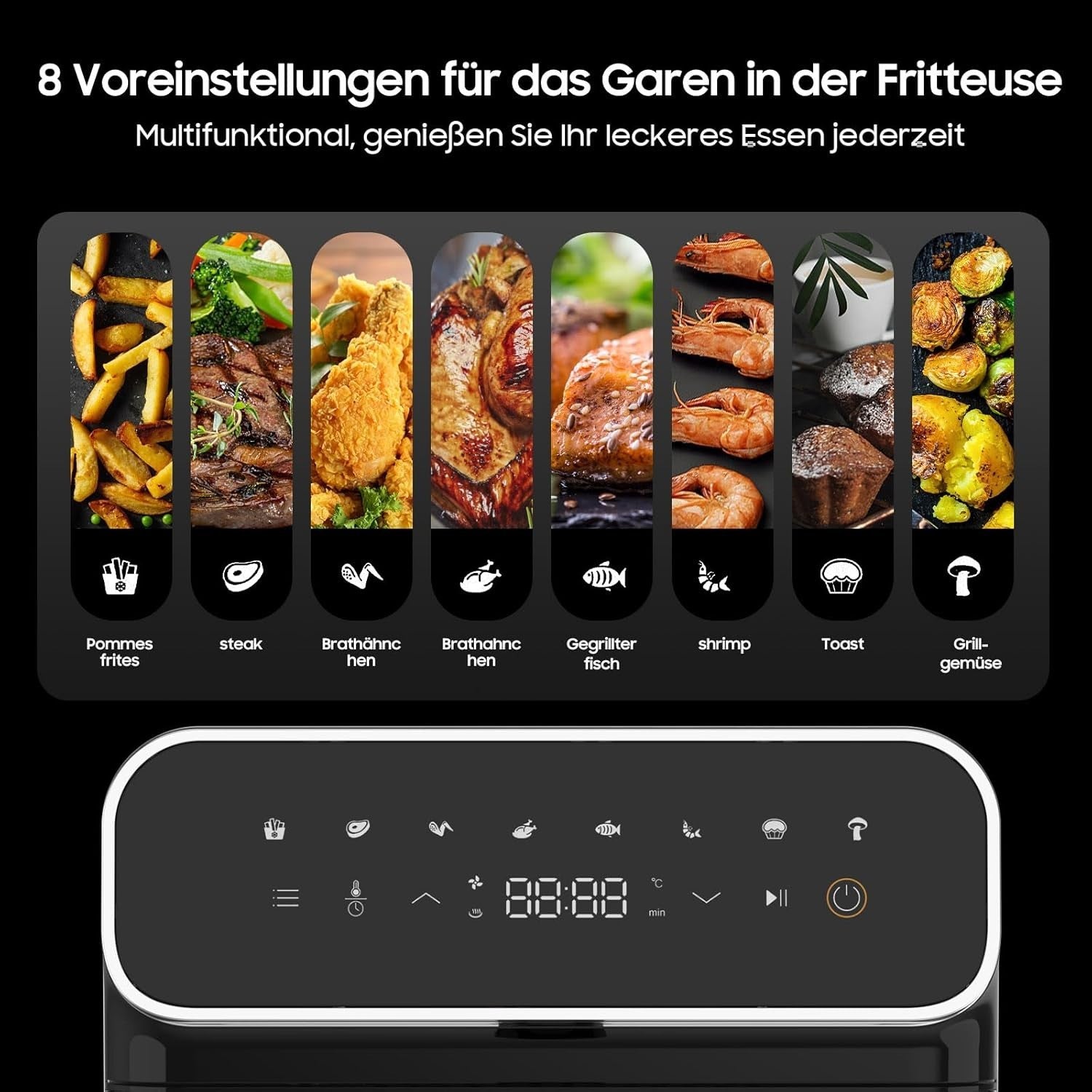 Heißluftfritteuse 6,7 L Airfryer XXL - Fritteuse Heissluft Ohne Fett | 2200W Heissluftfriteuse mit 8 Kochprogramme, Digitalem Display