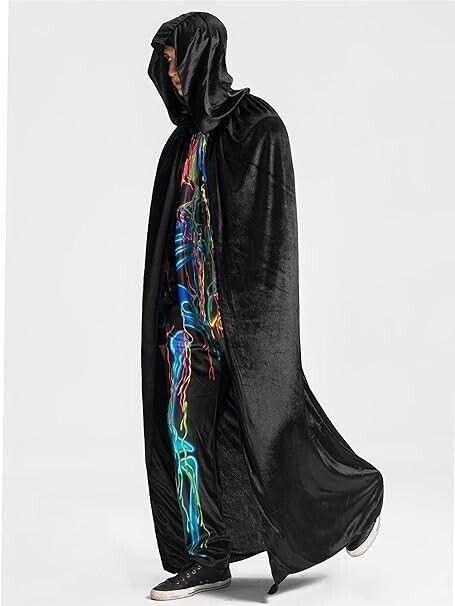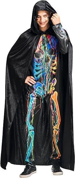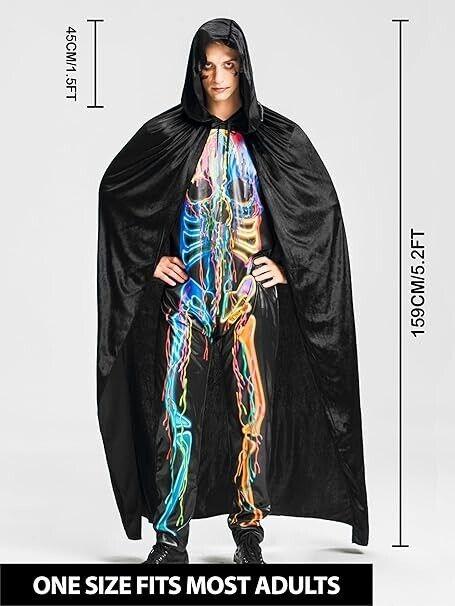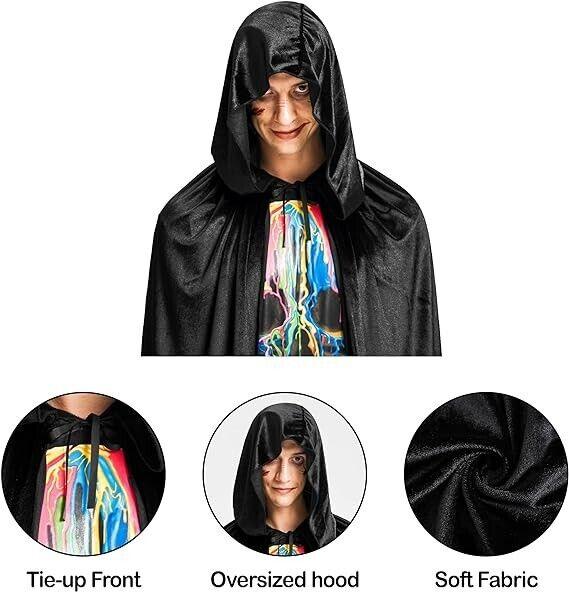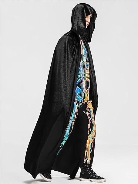 Herren-Kostüm mit schwarzem Kapuzenumhang, Umhang in voller Länge für Unisex-Erwachsene, Halloween-Rollenspielzubehör, durchschnittliche Größe, Z108
