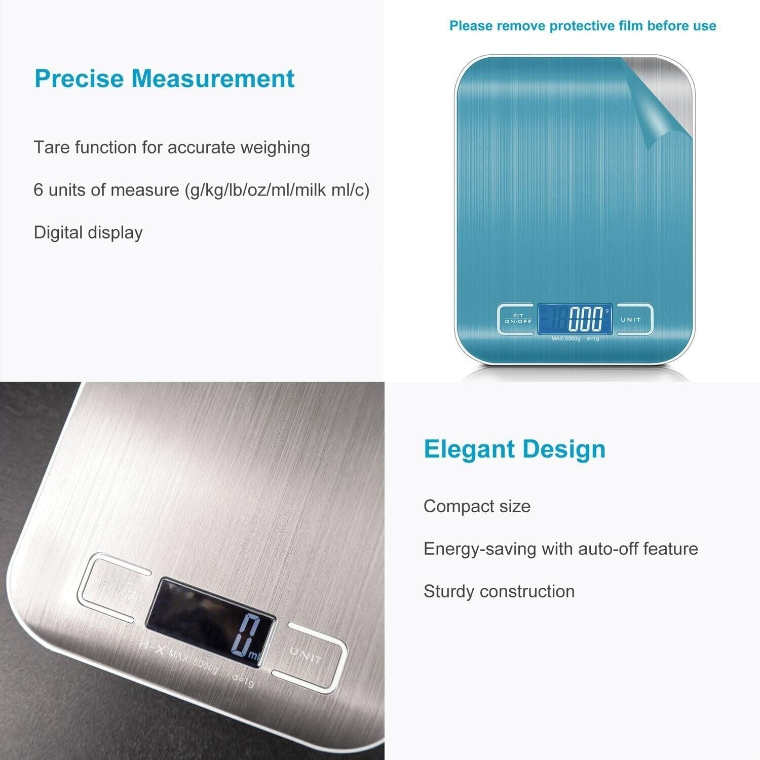 • Die Waage liefert klare Ergebnisse: Schnelles Zurücksetzen des Gewichts auf Null mit TARA-Funktion; 6 Maßeinheiten (g / kg / lb / oz / ml / milk-ml).Perfekt zum Messen von Zutaten beim Kochen und Backen.