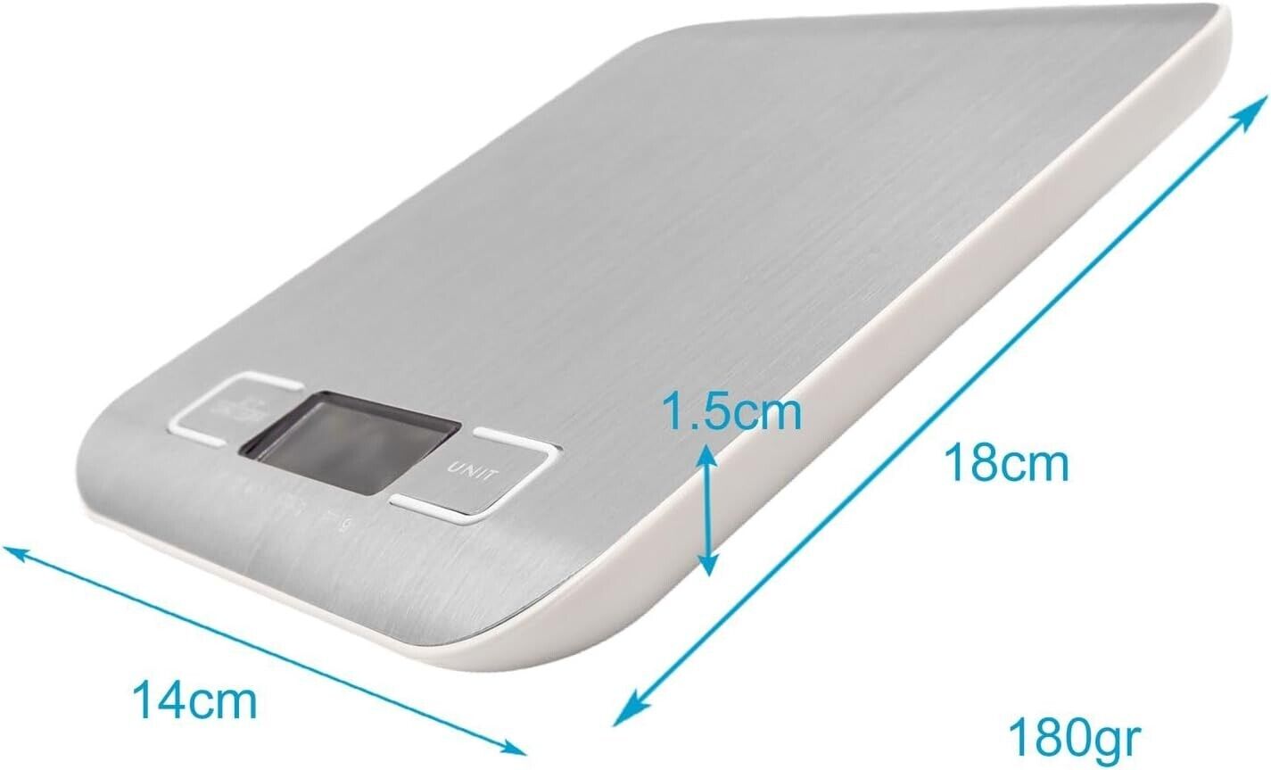 Intirilife Digitale Küchenwaage in Silber -18. x 14 x 1,5 cm- 5kg Elektronische