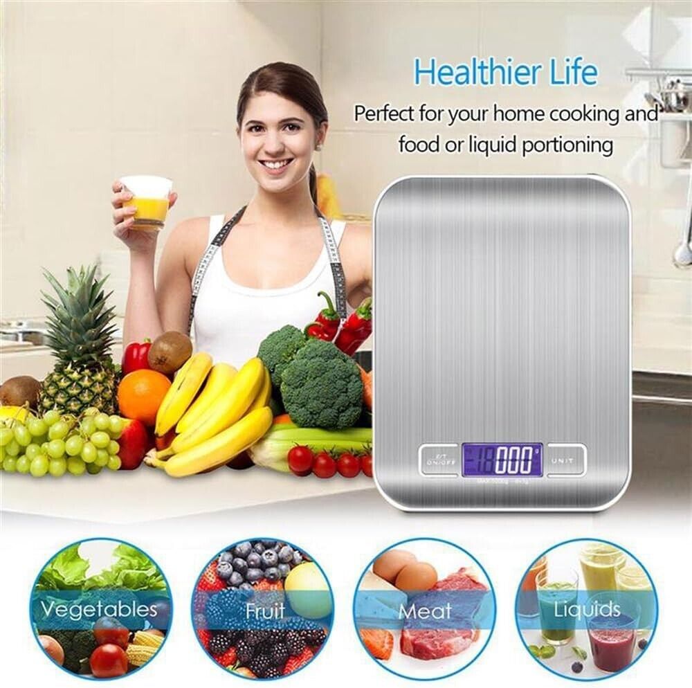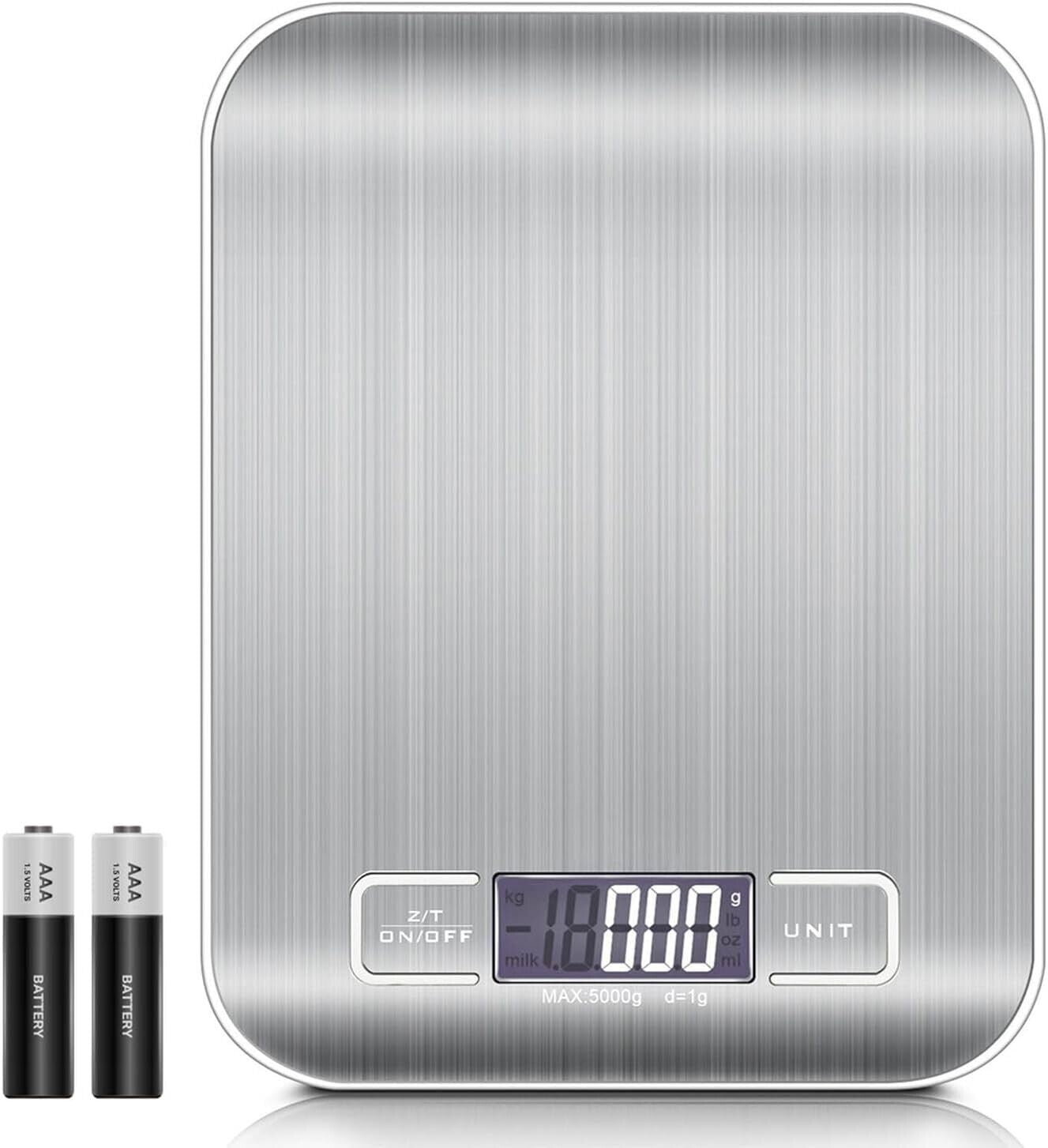 Intirilife Digitale Küchenwaage in Silber -18. x 14 x 1,5 cm- 5kg Elektronische Waage für Küche mit Tara Funktion- Extrem Präzise Küchen-Digitalwaage mit LCD-Display zum Backen,Kochen,Schmuck
