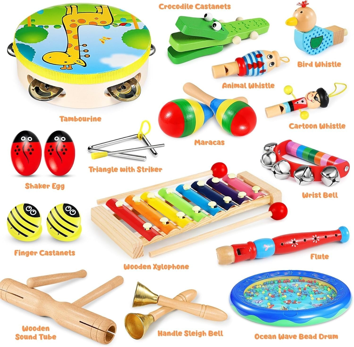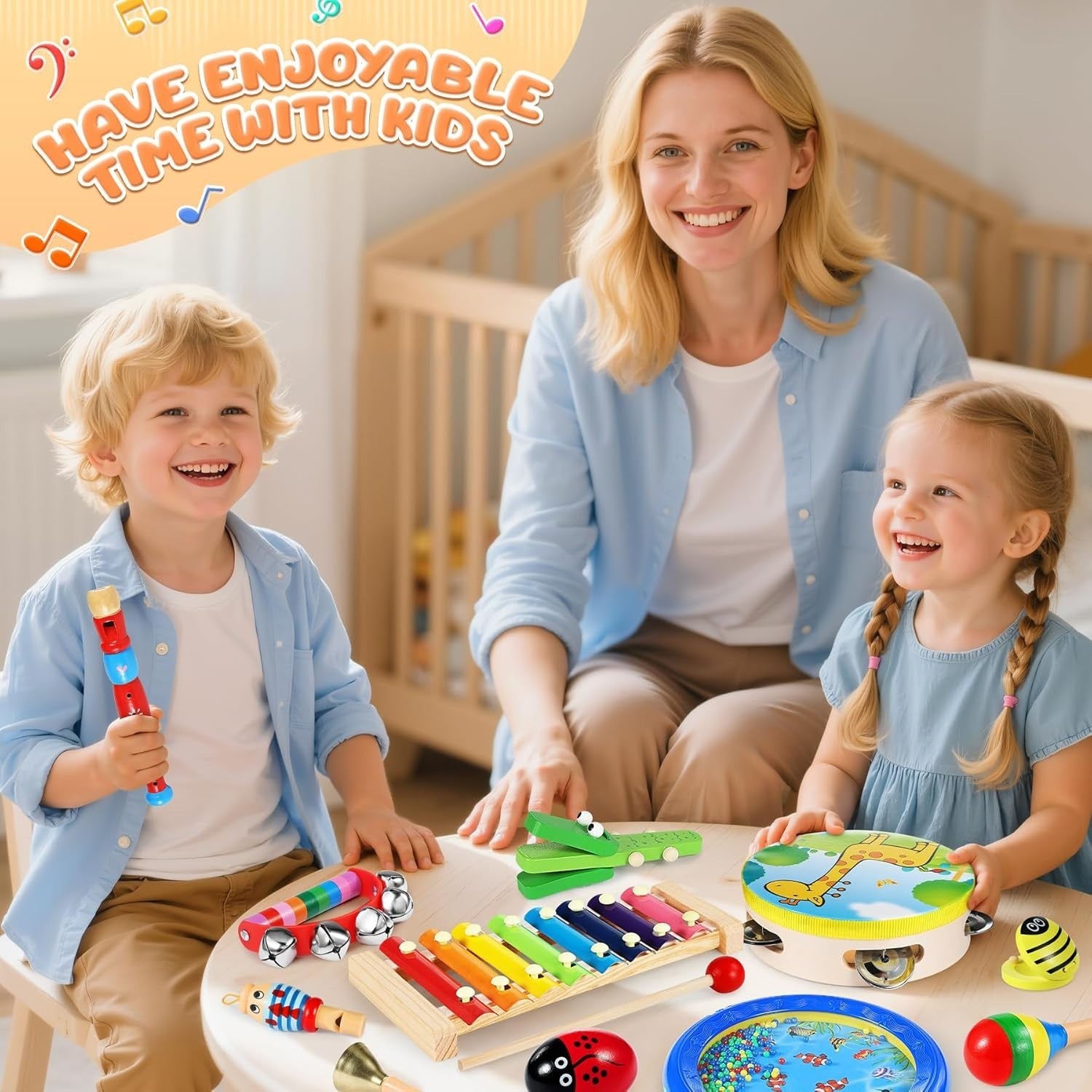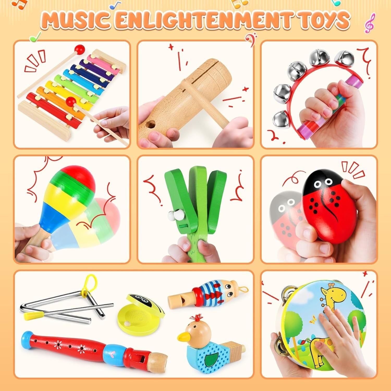 Jojoin Musikinstrumente für Kinder ab 3 Jahre - 24 Stück Instruments Percussion Holzspielzeug - Baby Kinder Montessori Spielzeug - Xylophon Trommel Kinderspielzeug Geschenke für Kleinkinder
