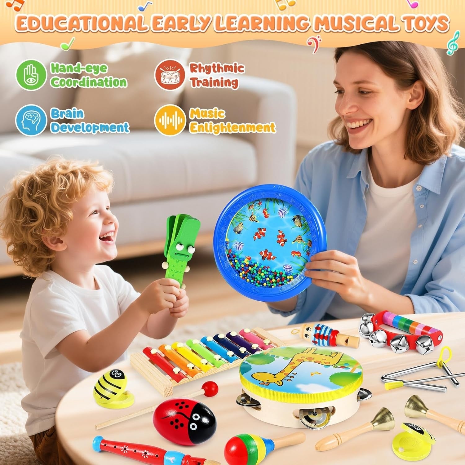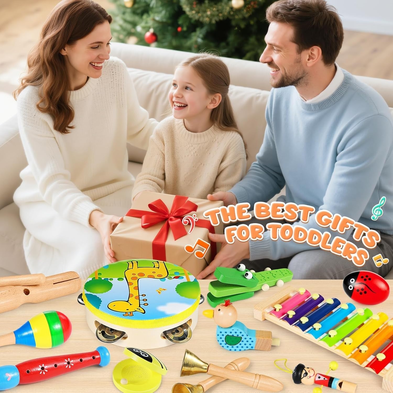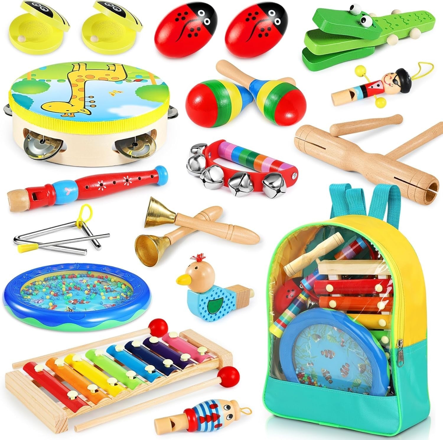 Jojoin Musikinstrumente für Kinder ab 3 Jahre - 24 Stück Instruments Percussion Holzspielzeug - Baby Kinder Montessori Spielzeug - Xylophon Trommel Kinderspielzeug Geschenke für Kleinkinder