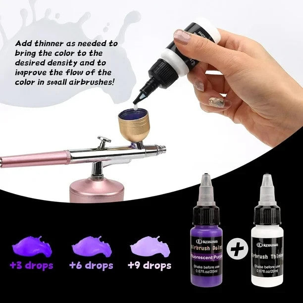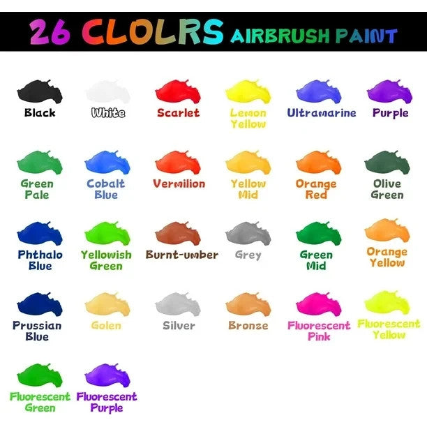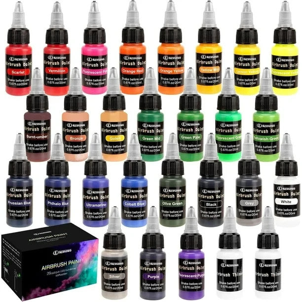 Kernowo Airbrush-Farbe, 26 Farben mit 2 Verdünnern, Airbrush-Farbset, wasserbasi