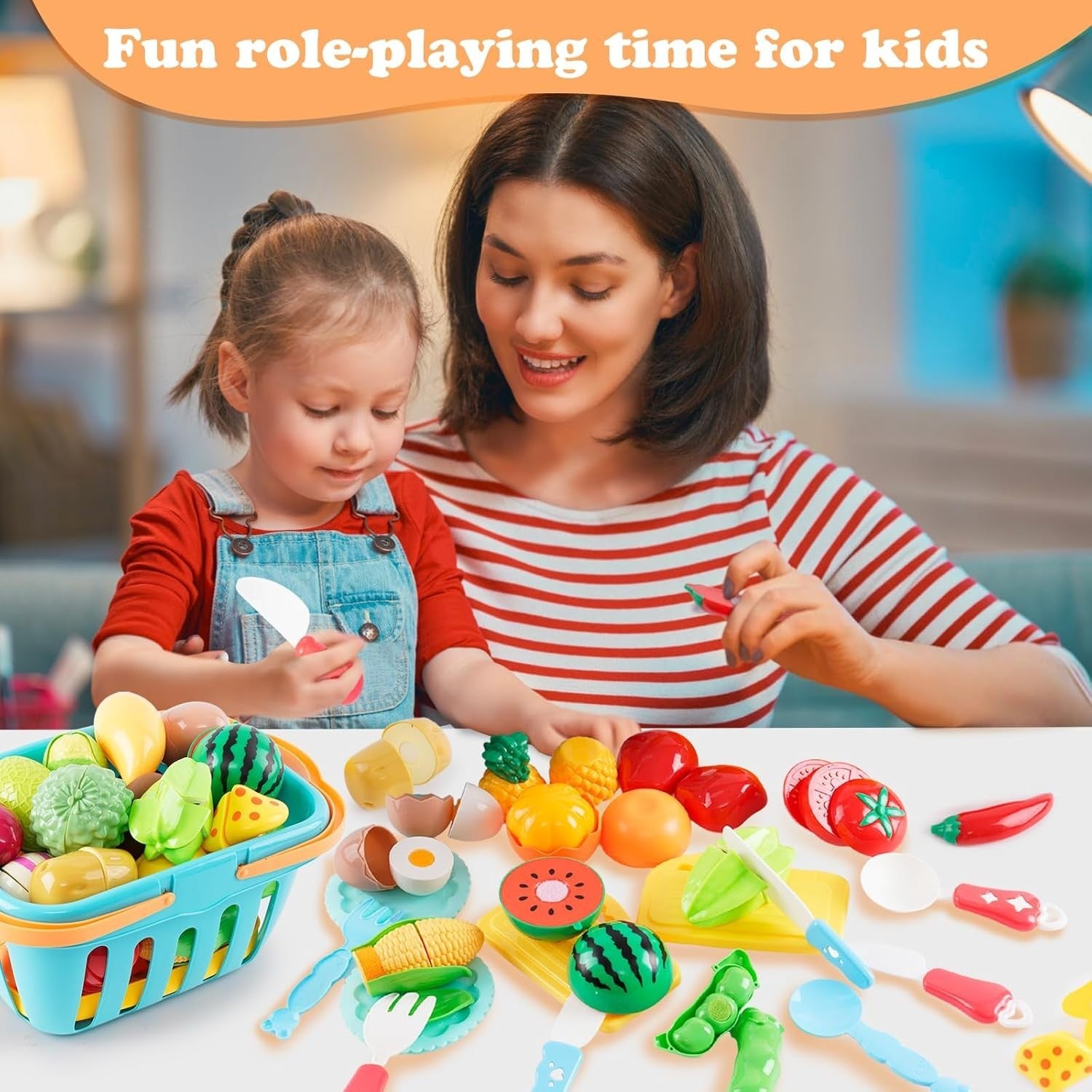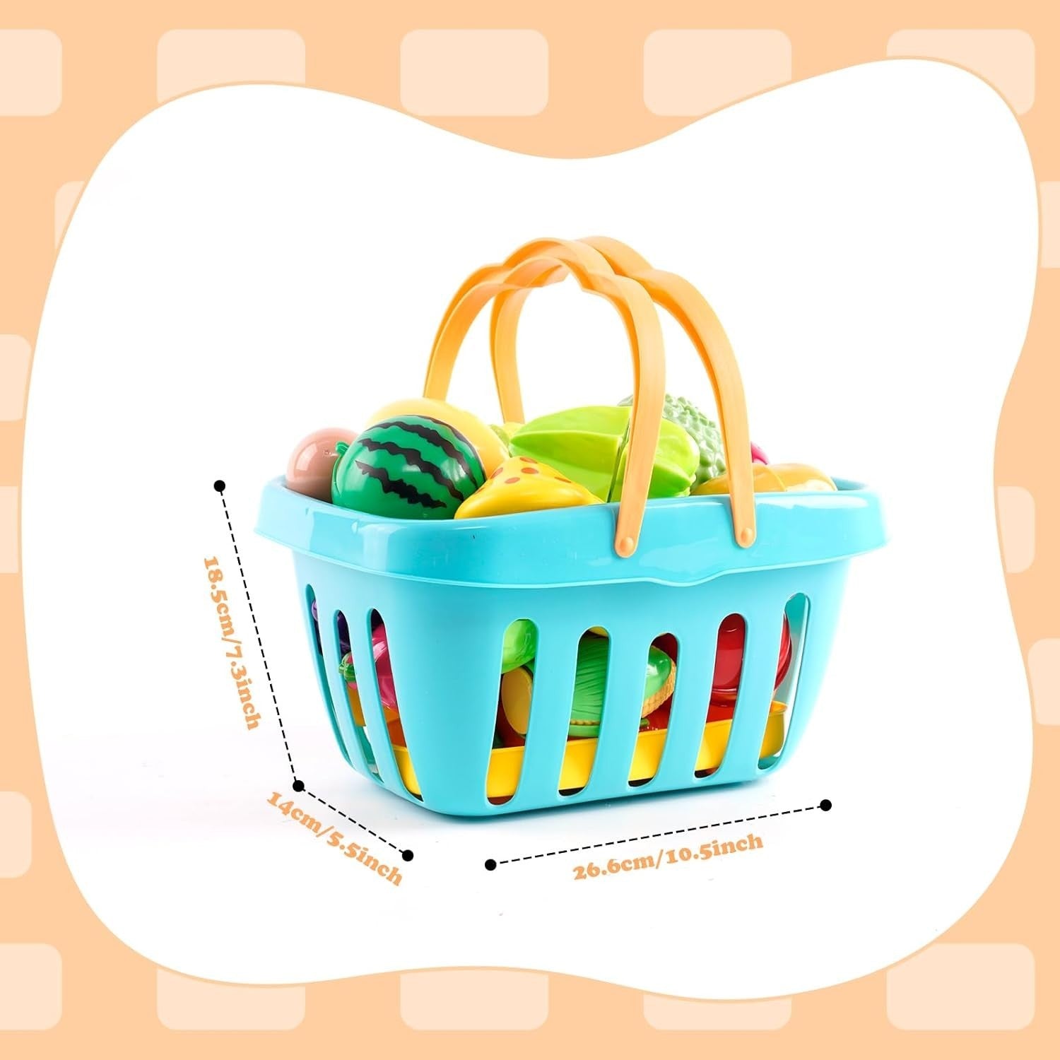 Kinderküchenzubehör mit Obst, Korb, Gemüse und Besteck Lernspielzeug schneiden