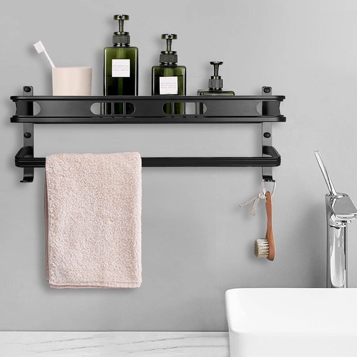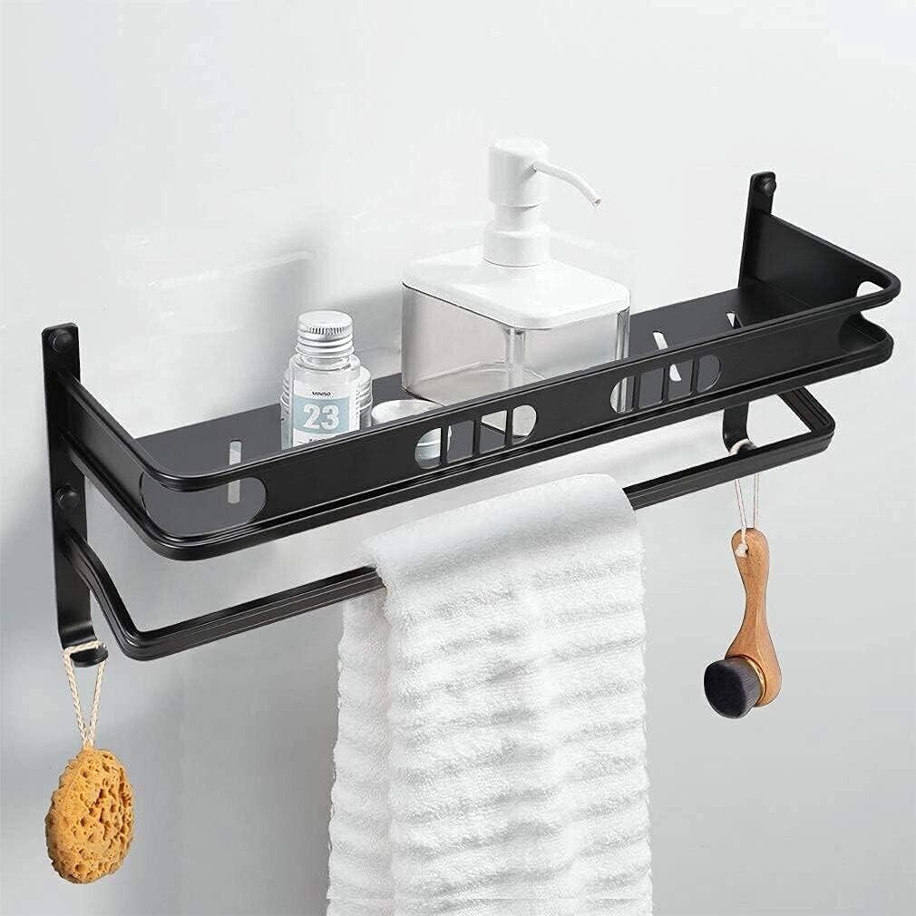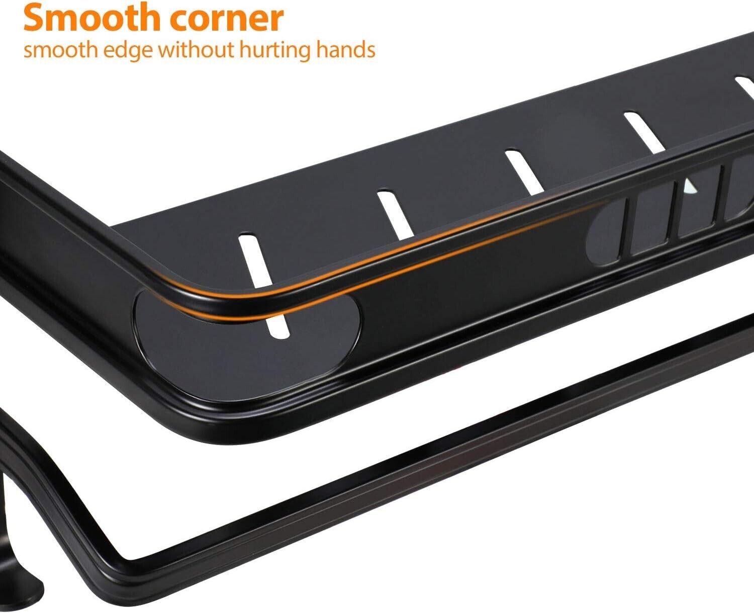 KINLO Duschablage ohne Bohren Badezimmer Duschregal Badablage kein Schaden Wandregal Aufbewahrung Duschkorb mit Handtuchhalter und 2 Haken Für Badezimmer Küche Schwarz