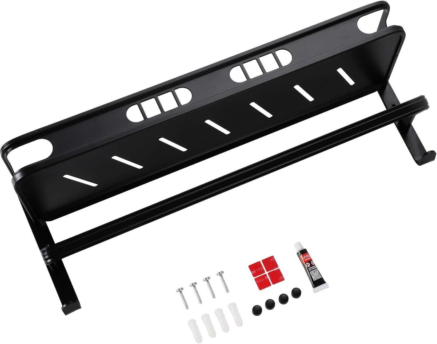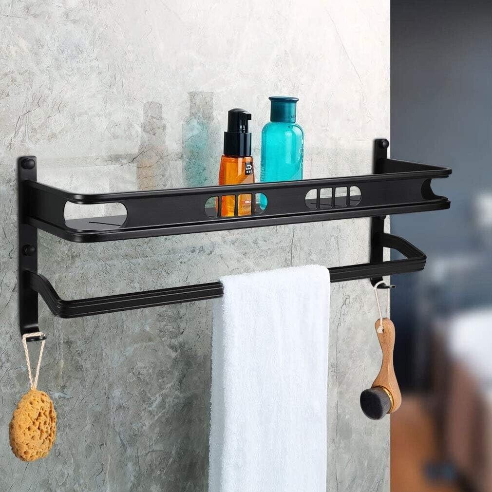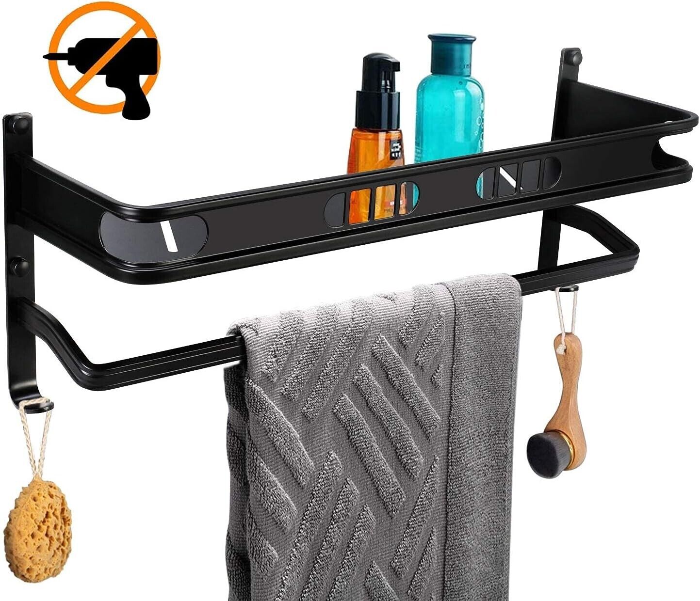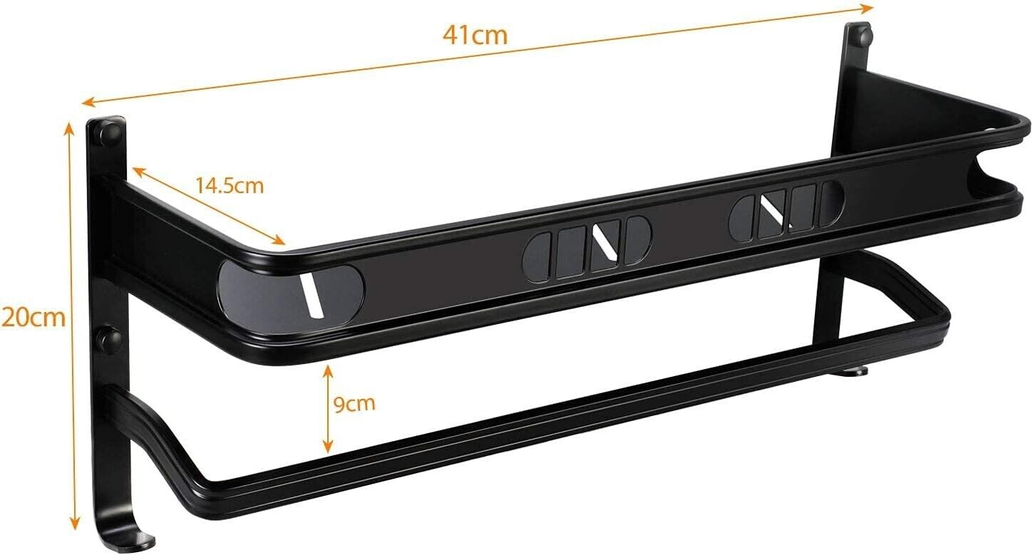 KINLO Duschablage ohne Bohren Badezimmer Duschregal Badablage kein Schaden Wandregal Aufbewahrung Duschkorb mit Handtuchhalter und 2 Haken Für Badezimmer Küche Schwarz