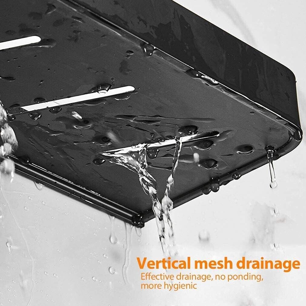 • 【Ausführung der Entwässerungsbohrung】Dank des hervorragenden Drainageloch Designs sammelt sich kein Wasser in unserem Badregal an. So bleibt das Duschregal trocken und ordentlich und verhindert die Vermehrung von Bakterien. Halten Sie Ihre Badezusätze sauber und Klar.