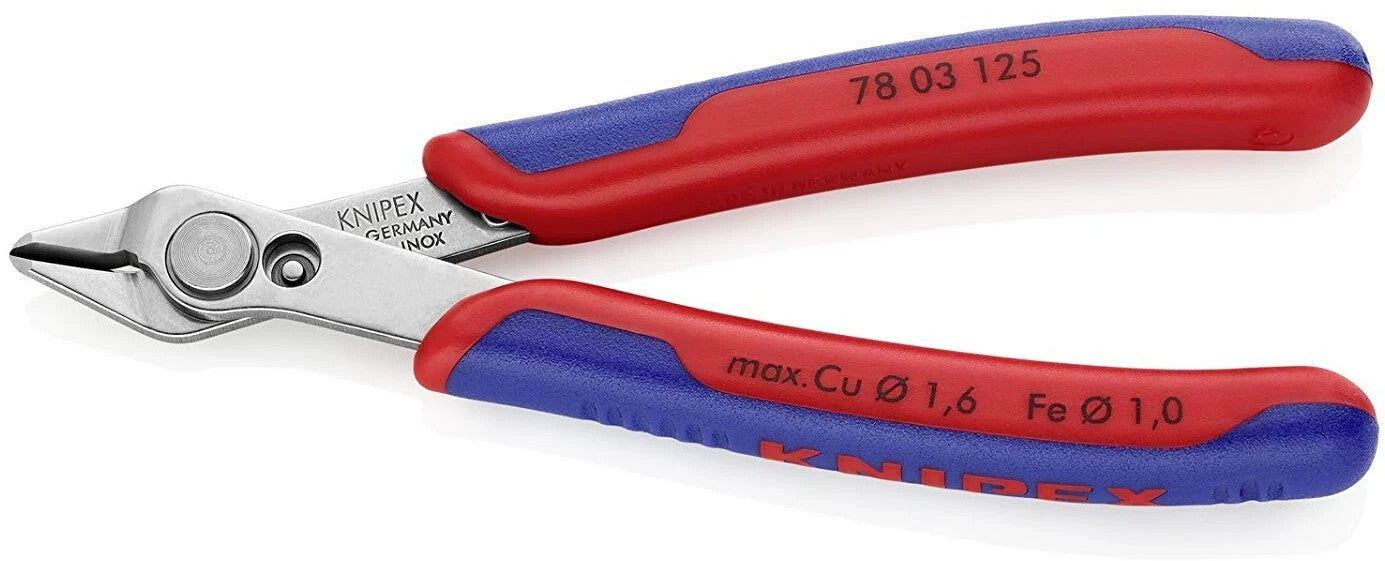 Bei Arbeiten an elektronischen Bauteilen und in der Feinmechanik ist Fingerspitzengefühl erforderlich. Die Knipex Electronic Super Knips 78 03 125 ist aufgrund der reibungsfreien Schenkelfeder so leichtgängig, dass die Kraft sehr fein dosiert werden kann – mit Fingerspitzengefühl.