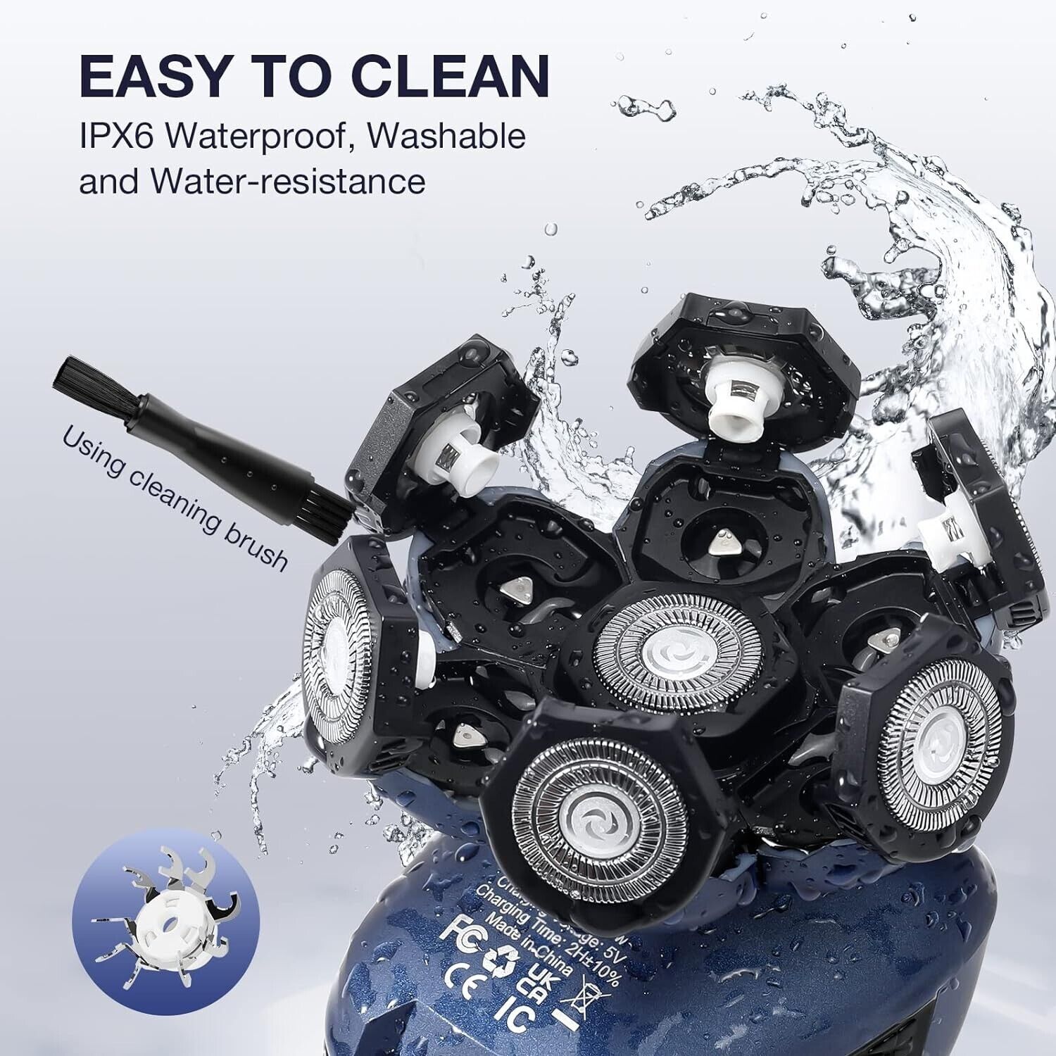 - 【7D schwimmender Rasierkopf】 Die verbesserte Version des schwimmenden 7D-Rasiersystems ist ergonomisch gestaltet. Das Design von 7 Schneidköpfen erhöht den Rasierbereich und spart Rasierzeit. Unser Rasierer ist mit einem rutschfesten Griff für einfaches Greifen entworfen, eine großartige Wahl für Ihre rasierten Köpfe. Bitte reinigen Sie regelmäßig die Haare im Rasierkopf.